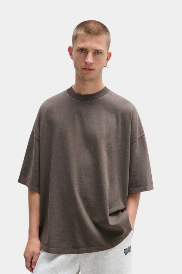 Het AFOMA T-shirt van AMERICAN VINTAGE heeft een relaxed silhouet met een minimalistische uitstraling en een moderne, iets oversized fit. Gemaakt van 100% katoen voor een ademende, zachte kwaliteit die prettig draagt. Een perfecte basic voor in je gelaagde outfits of als statement piece op zichzelf. Shop nu en combineer met een jeans of losse pantalon voor een effortless look. Shop hem nu!
