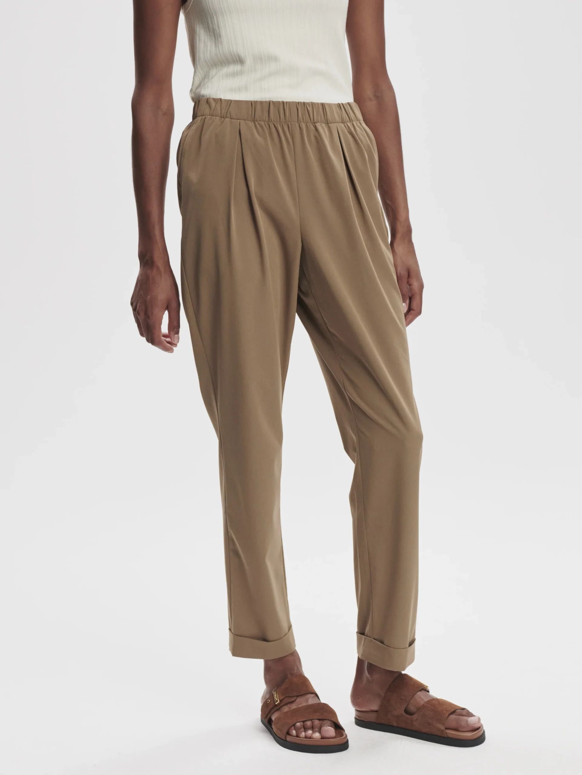 De ALANA SLIM TAPERED CUFF PANT 29 van VARLEY is een stijlvolle tapered broek met sportieve roots en een elegante uitstraling. Deze broek is gemaakt van Varley’s kenmerkende DoubleSoft™-materiaal, wat zorgt voor ultieme zachtheid en comfort. De mix van viscose, polyester en elastaan biedt een soepele fit en voelt luxe aan op de huid. Combineer ‘m met een oversized blouse of een aansluitende top voor een moeiteloos chique look – shop nu jouw favoriet!