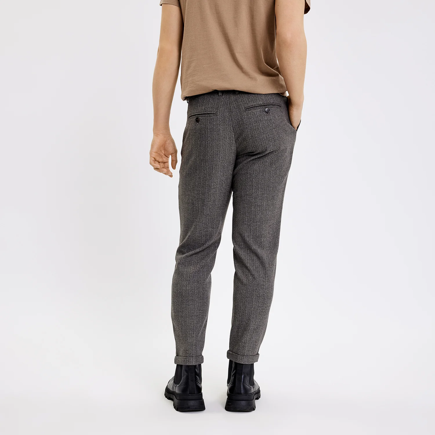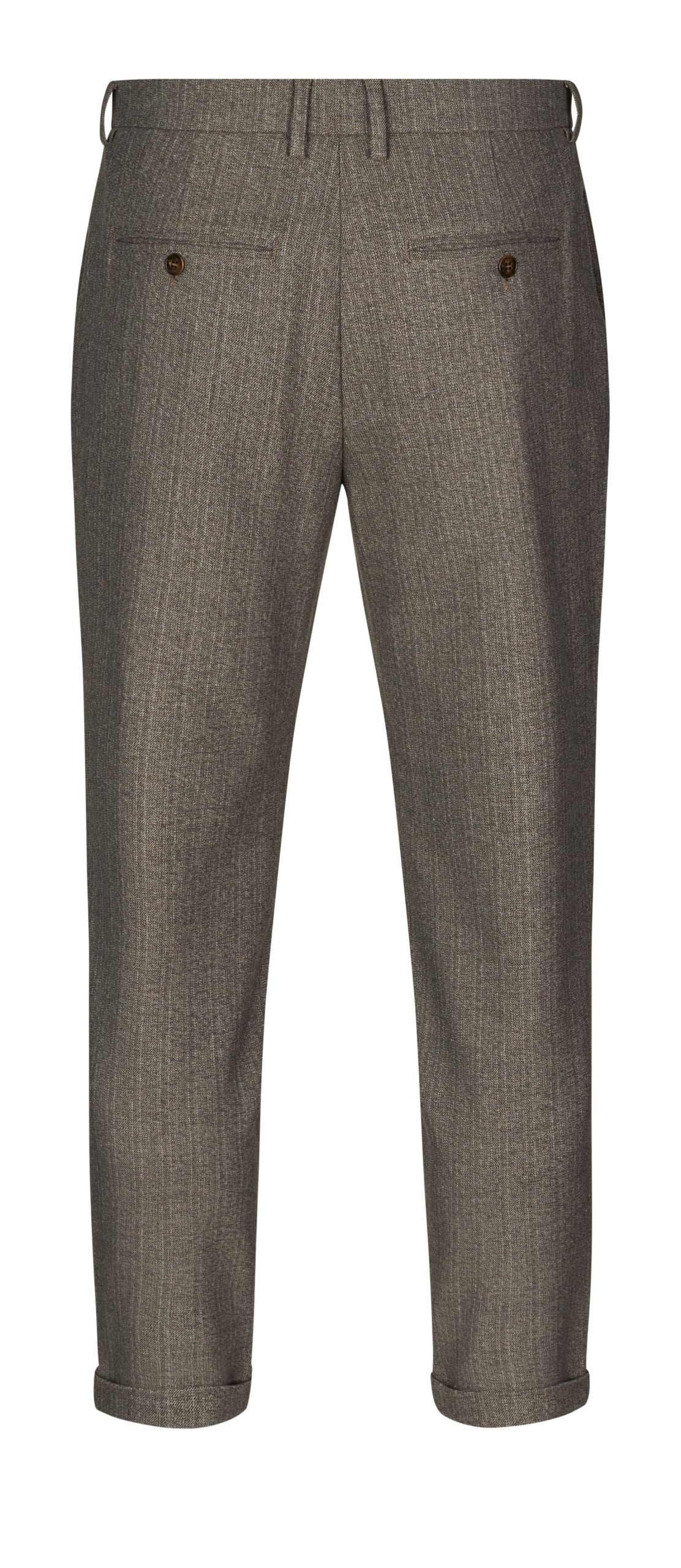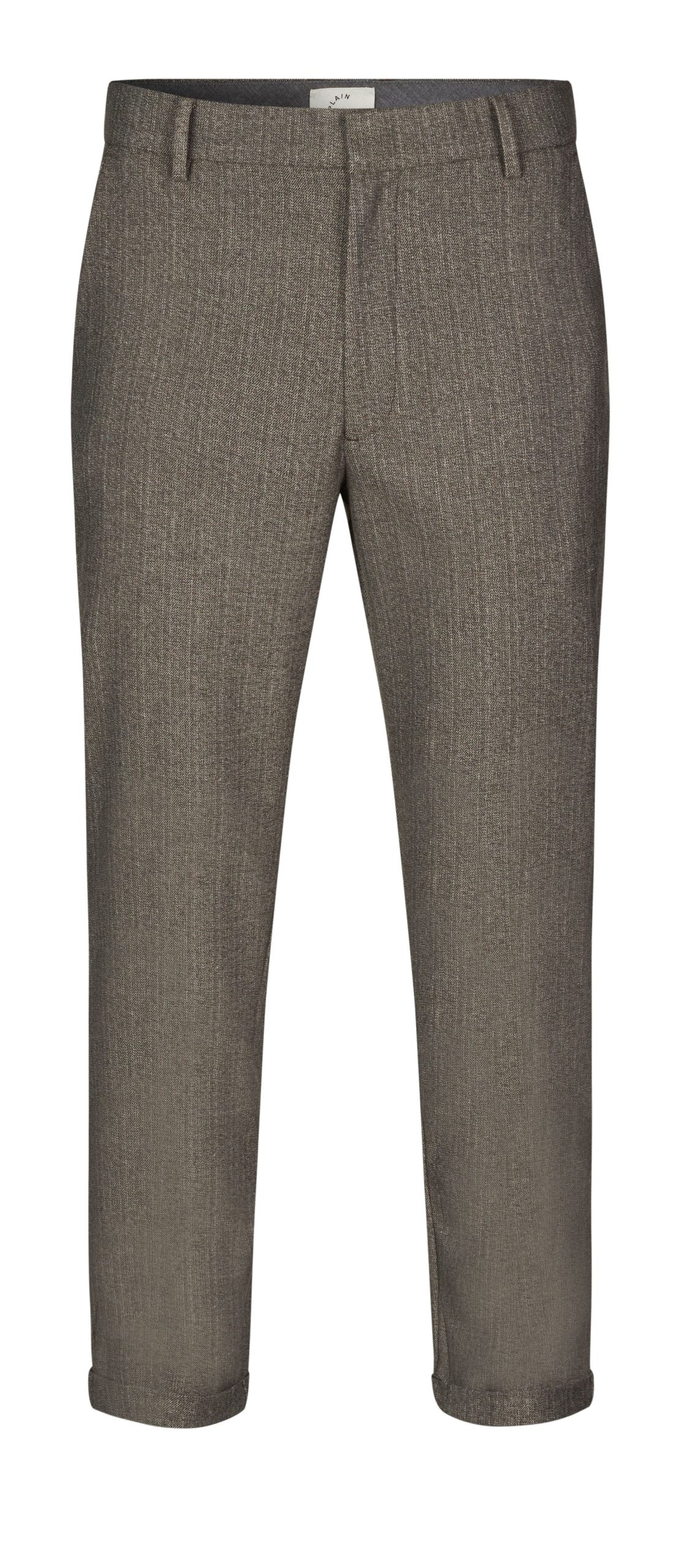 De ALBERT broek van PLAIN voor heren is een tapered-fit broek met een klassieke utistraling. De broek heeft een lengte tot net boven de enkels, valt mid-waist en heeft omgeslagen zoomen. Daarnaast is de broek voorzien van twee schuine zakken en twee paspelzakken aan de achterkant.