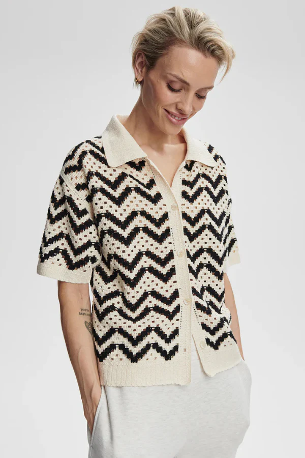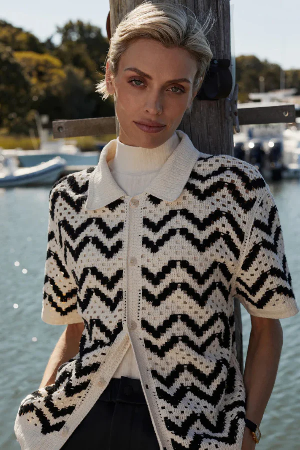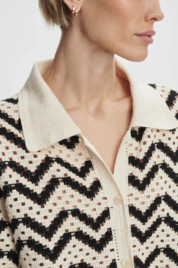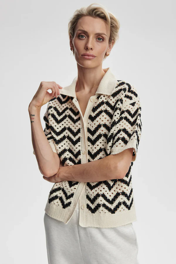 Voeg moeiteloze elegantie toe aan je garderobe met de Anais Crochet Polo Shirt van VARLEY. Deze moderne interpretatie van een klassieke polo is gemaakt van 100% katoen en valt soepel in een ontspannen pasvorm. De verfijnde gehaakte structuur voegt subtiele textuur toe, terwijl de traditionele kraag en knoopsluiting zorgen voor een tijdloze uitstraling. Draag hem casual op een jeans of stijlvol met een pantalon, een veelzijdig item voor elke dag.