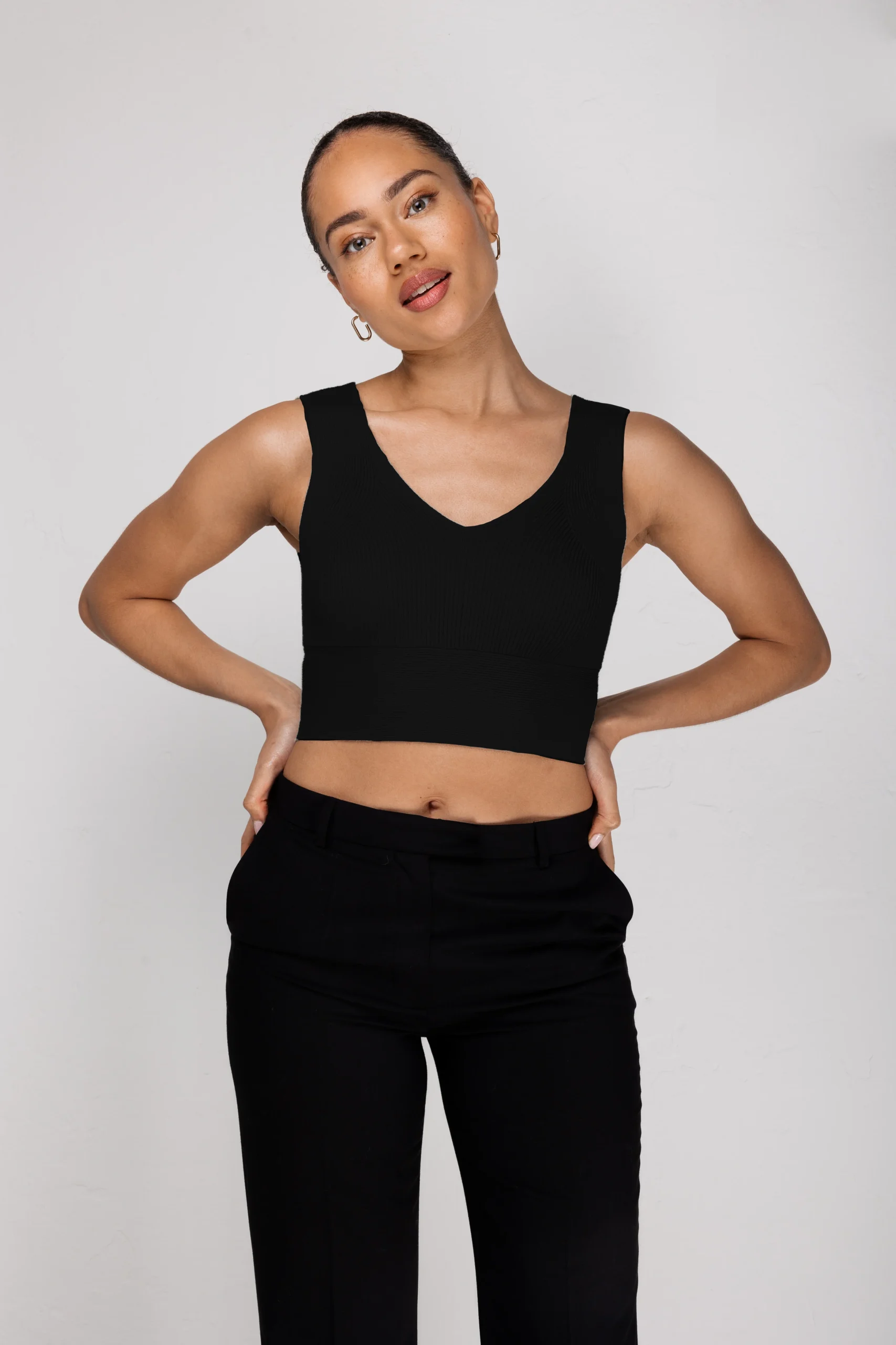 De ANNE is een stijlvolle cropped-top van AVEC ĒLAN. De top heeft een V-halslijn en getailleerde pasvorm. Hierdoor wordt het lichaam mooie geaccentueerd.