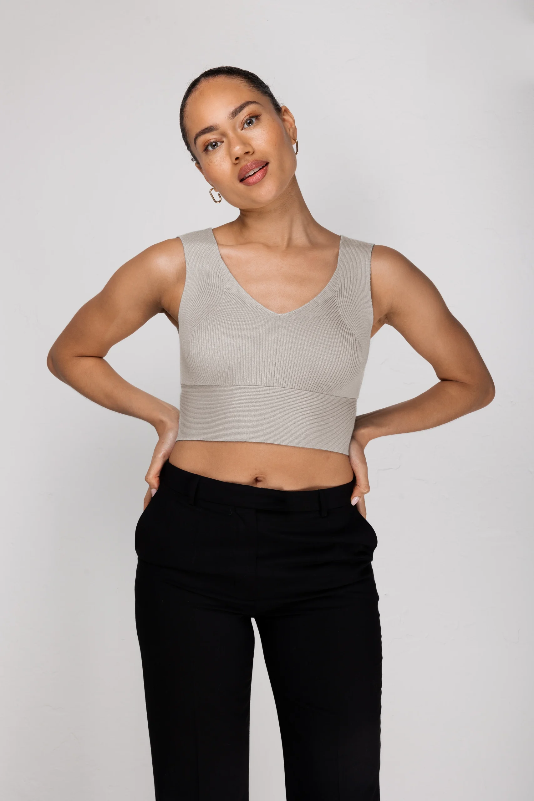 De ANNE is een stijlvolle cropped-top van AVEC ĒLAN. De top heeft een V-halslijn en getailleerde pasvorm. Hierdoor wordt het lichaam mooie geaccentueerd.