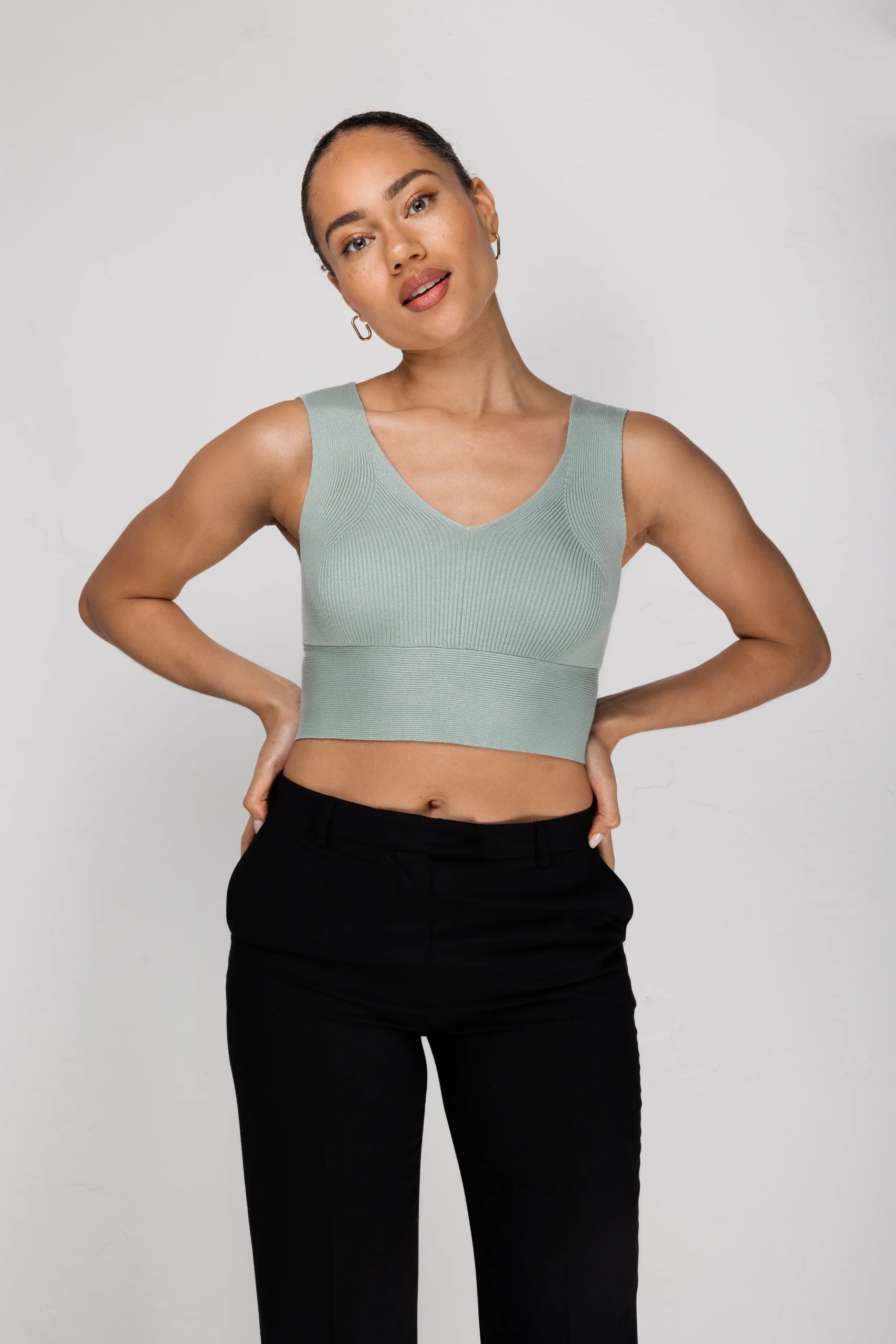 De ANNE is een stijlvolle cropped-top van AVEC ĒLAN. De top heeft een V-halslijn en getailleerde pasvorm. Hierdoor wordt het lichaam mooie geaccentueerd.