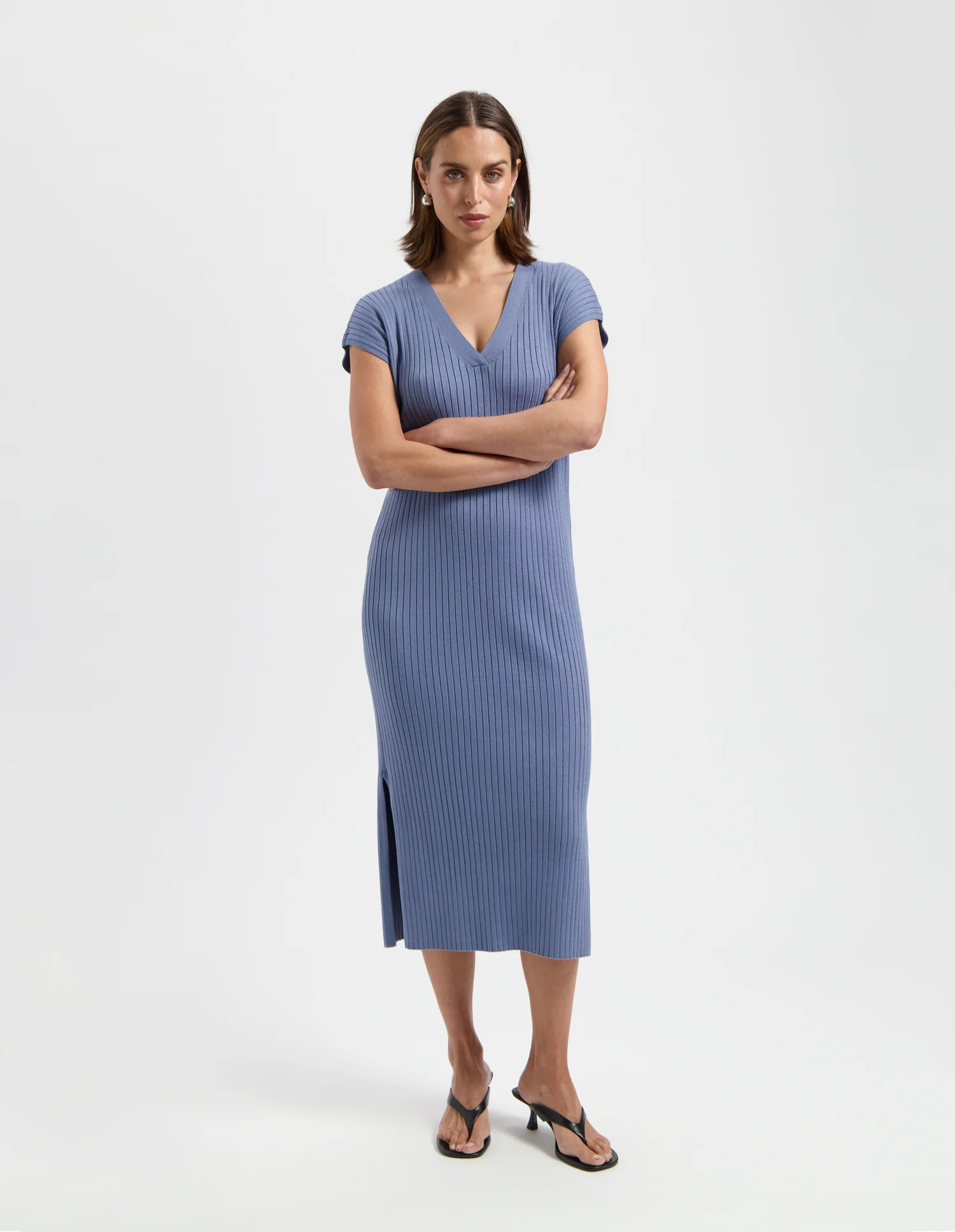 De ANOUK JURK van AVEC ĒLAN is een elegante jurk. De Anouk heeft een rib structuur, platte V-hals kraag en korte mouwtjes. Met het ceintuur creëer je een getailleerde look. De split aan de onderkant van de jurk geeft dit item een extra stijlvolle touch. Draag de jurk met een slipper of een hakje, of met een laarsje en een jasje voor een meer winterse look. Shop ‘m nu op Antracite!