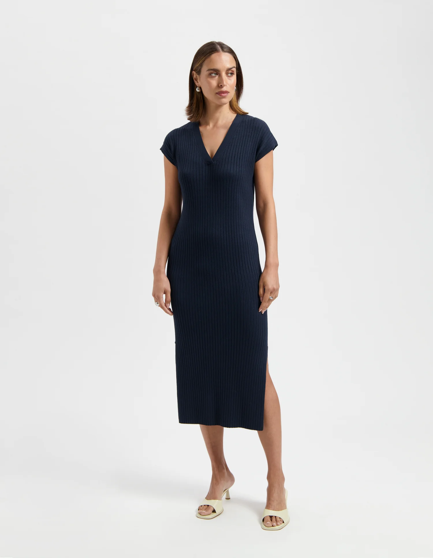 De ANOUK JURK van AVEC ĒLAN is een elegante jurk. De Anouk heeft een rib structuur, platte V-hals kraag en korte mouwtjes. Met het ceintuur creëer je een getailleerde look. De split aan de onderkant van de jurk geeft dit item een extra stijlvolle touch. Draag de jurk met een slipper of een hakje, of met een laarsje en een jasje voor een meer winterse look. Shop ‘m nu op Antracite!