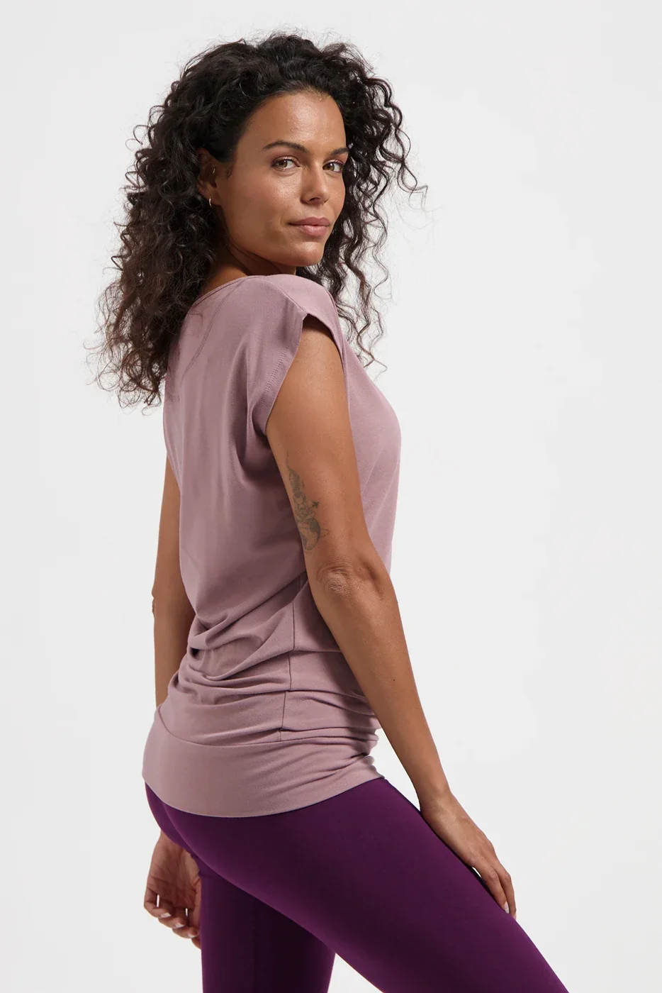 Het Asana Duurzaam Yoga Shirt heeft een relaxte pasvorm en blijft goed zitten dankzij de brede heupband. Die bedekt je buik en onderrug comfortabel. De ademende, dry-fit stof voert zweet af en houdt je langer fris tijdens je yoga practice. Gemaakt van duurzame materialen.