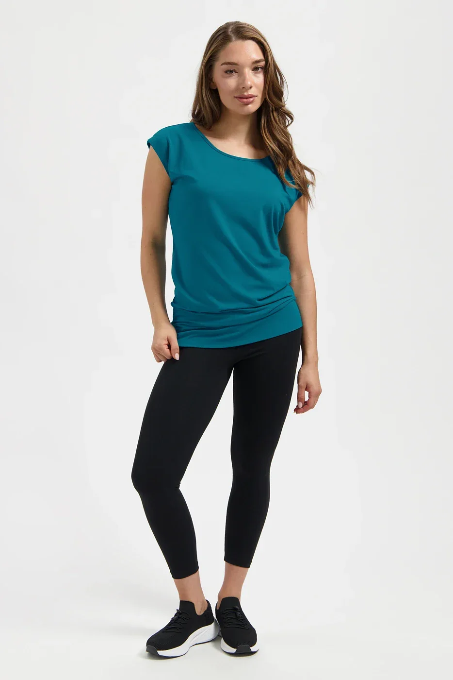 De Asana Yoga Pilates Shirt is een duurzaam yoga shirt voor dames. Dankzij de brede heupband blijft de top goed op z’n plek tijdens elke beweging. Gemaakt van ademende dry-fit stof op basis van bamboe, zodat je huid goed kan ademen en je langer fris en droog blijft – of je nu yoga of pilates doet.