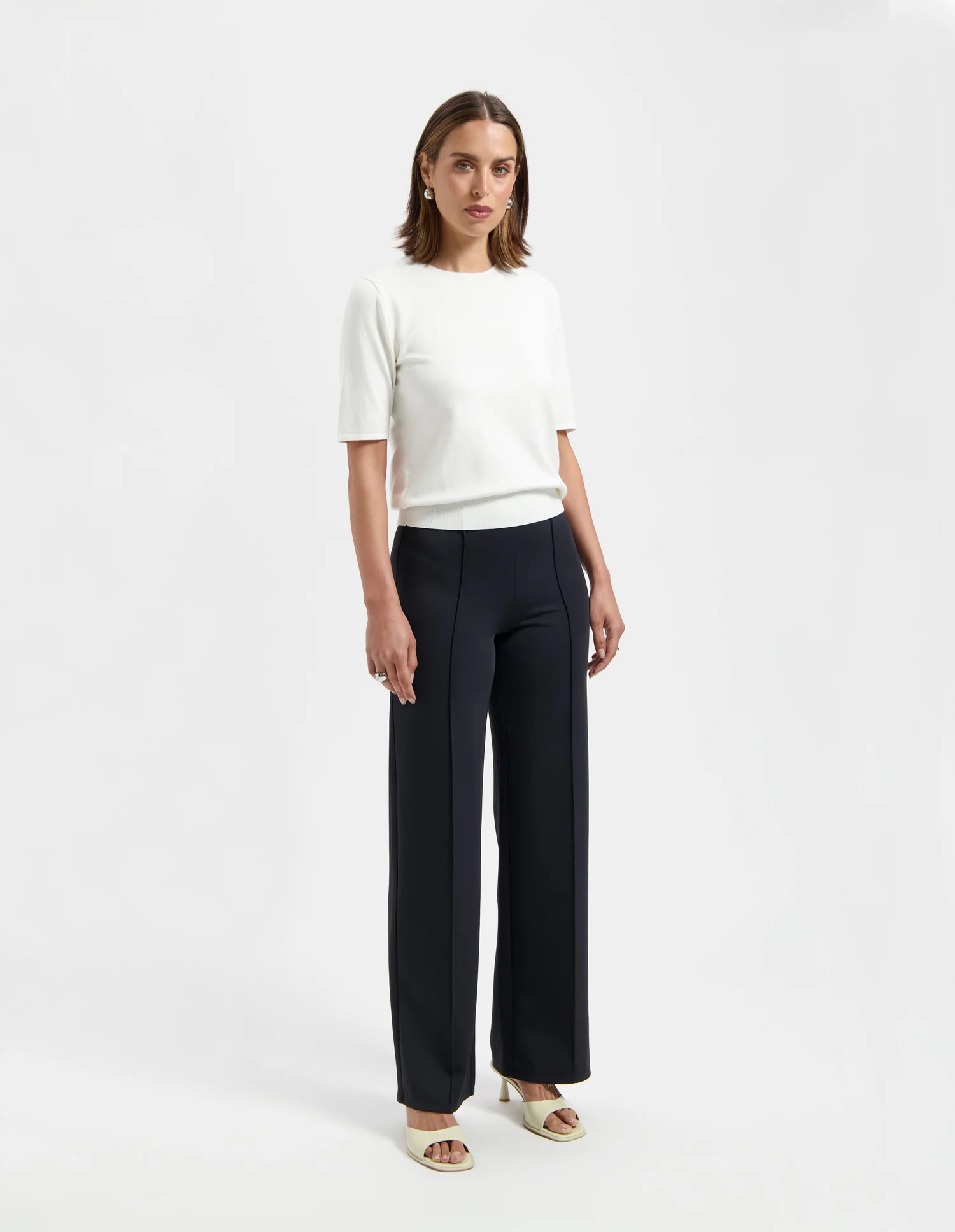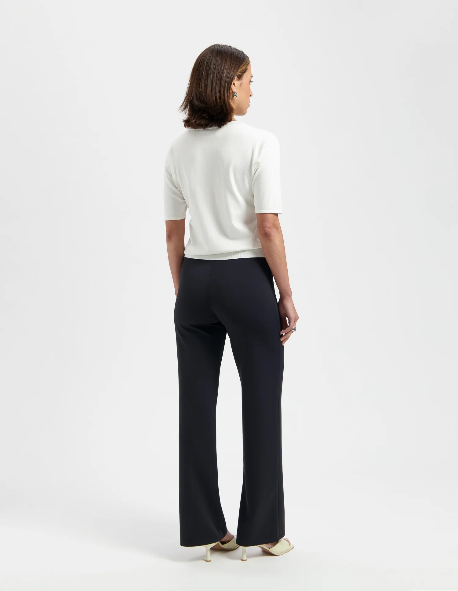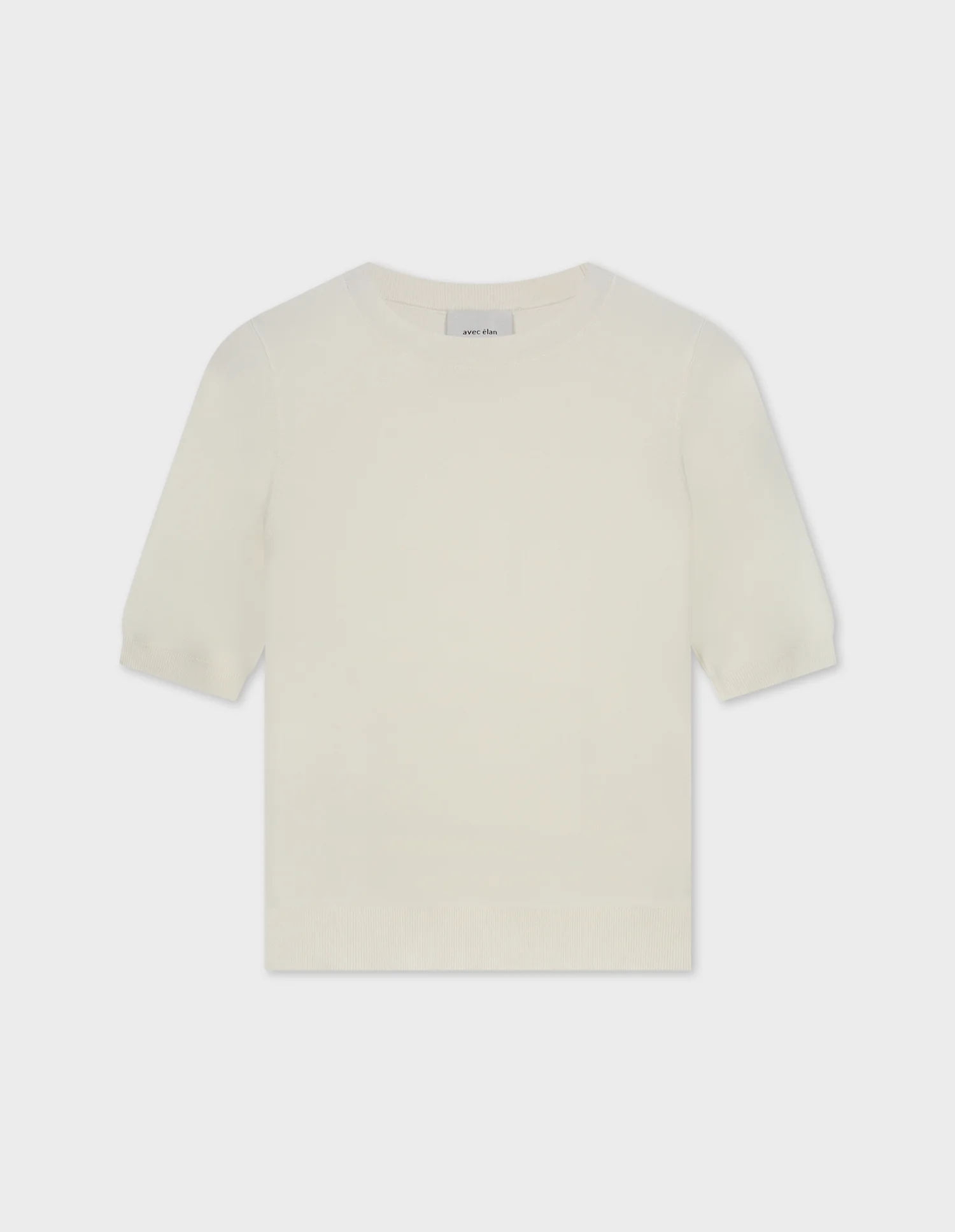 De BABS top van AVEC ĒLAN is de ultieme basic met een stijlvolle twist. Met korte mouwen, een ronde hals en een getailleerde pasvorm sluit deze top prachtig aan op het lichaam. De subtiele cropped lengte geeft een trendy en moderne uitstraling, terwijl de zachte viscoseblend garant staat voor comfort. Een tijdloze essential voor iedere garderobe.