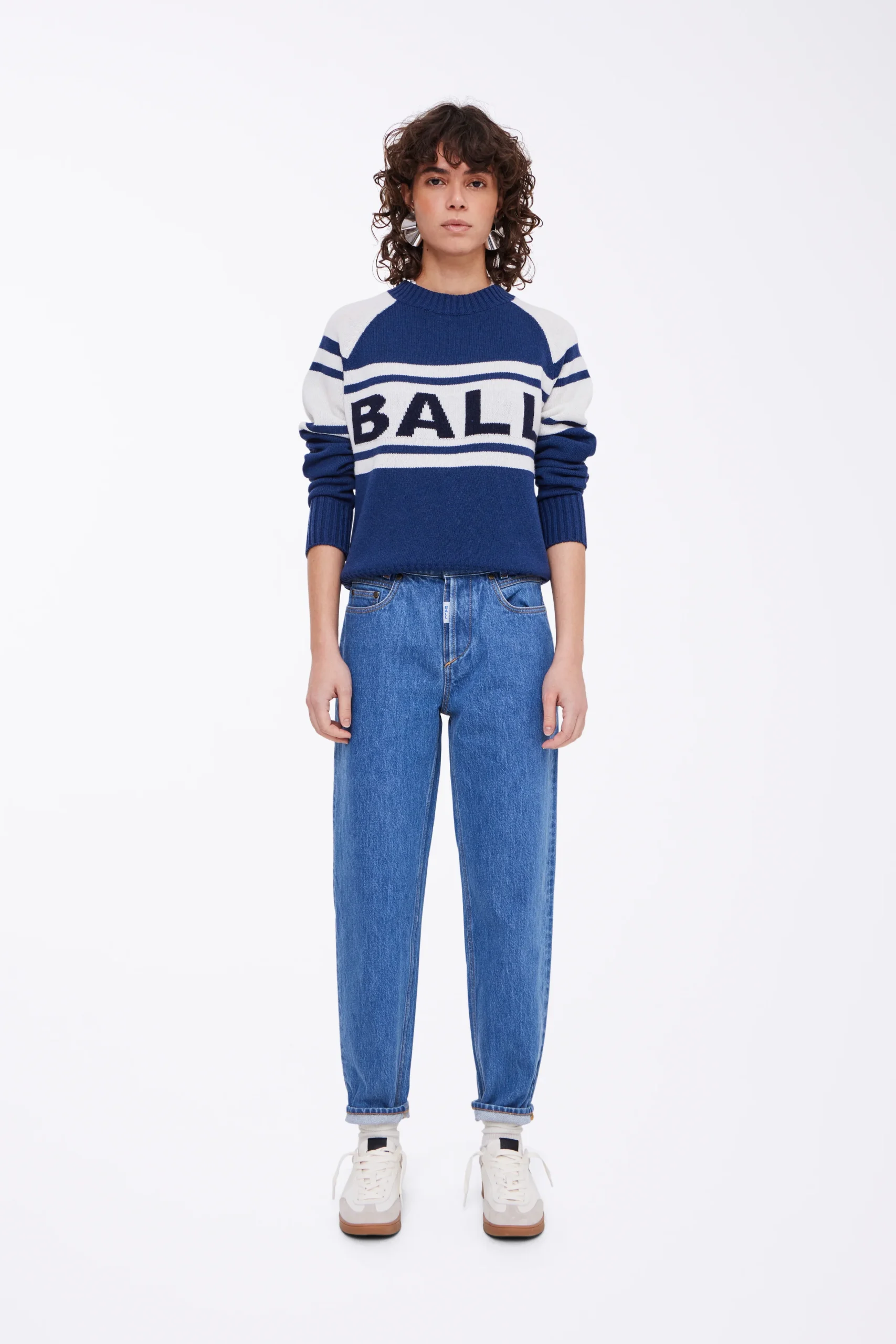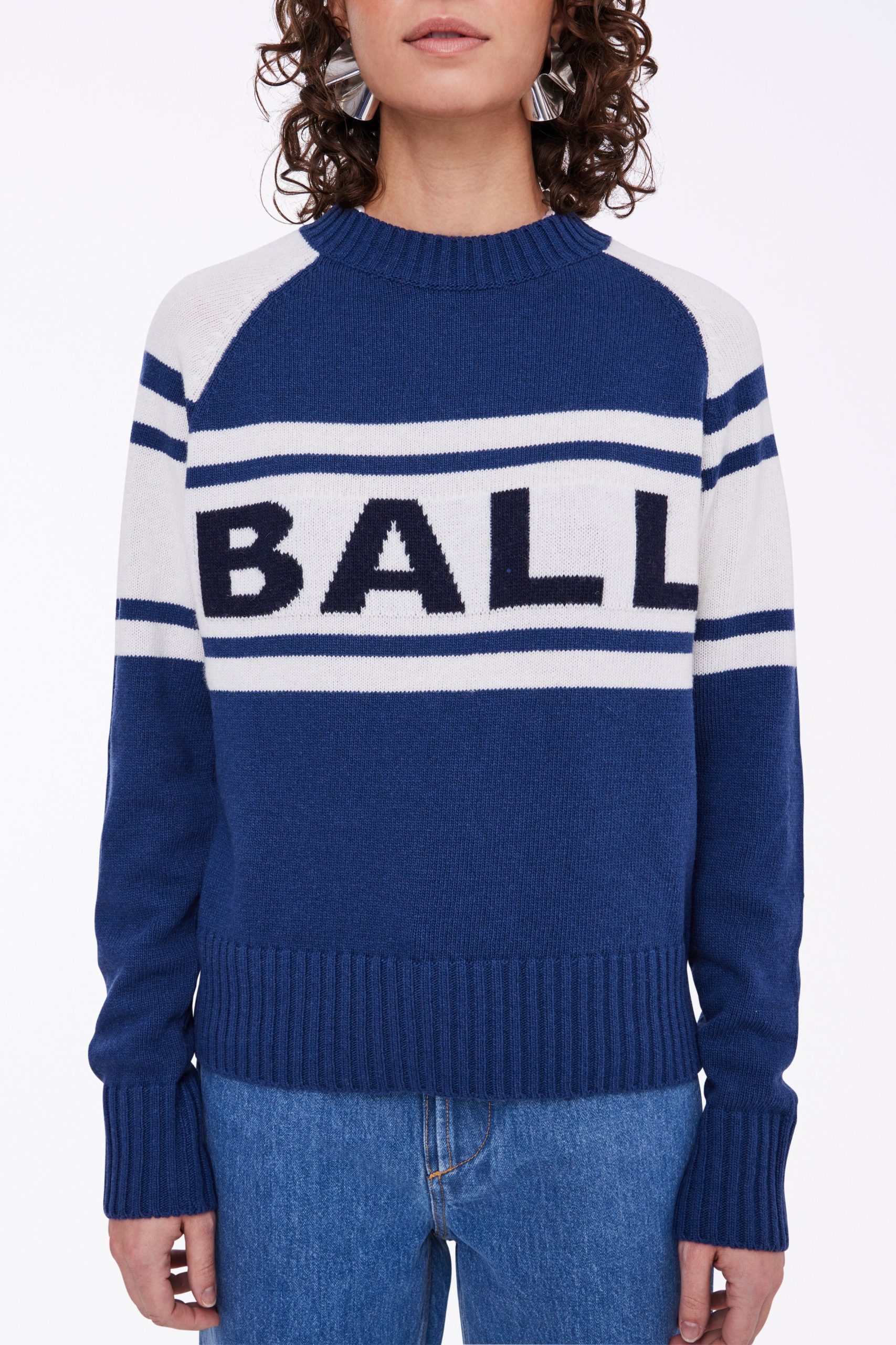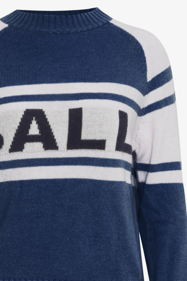 Deze heerlijke knitted trui van BALL geeft jouw casual look een stoere touch. Het is een trui met een normale pasvorm en de voorkant is voorzien van het BALL logo. De combinatie van blauw en wit geeft de trui een unieke touch. De trui is gemaakt van een mix van wol & viscose.