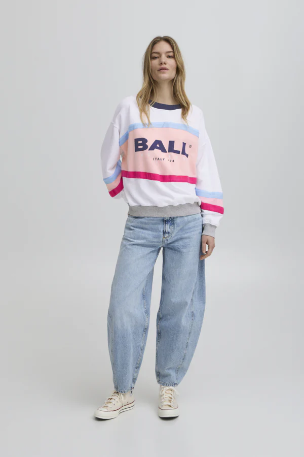 Ga voor stijl en comfort met de BALUCA sweater voor dames van BALL. Deze sweater van BALL is perfect voor een casual, maar toch stoere look. Het is een sweater met een normale tot relaxed pasvorm en heeft verlaagde schouders. Een mooi detail zijn de verschillend kleuren op de mouw en het BALL logo op de voorkant, wat de sweater een unieke uitstraling geeft. Shop nu deze stijlvolle sweater en voeg een tijdloos item toe aan je garderobe.
