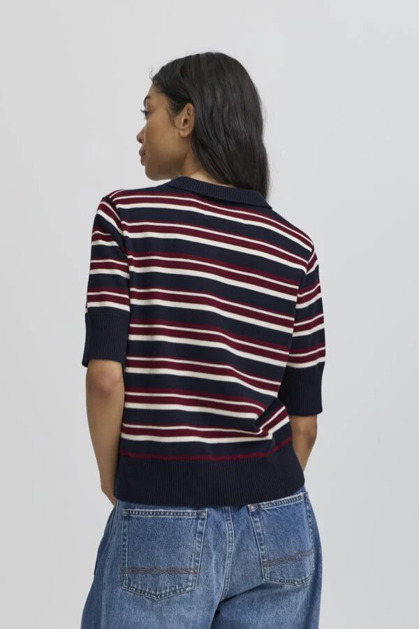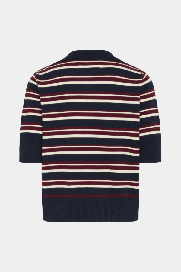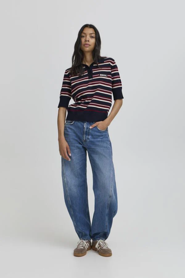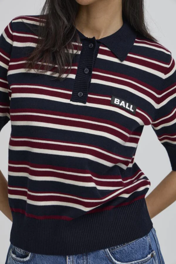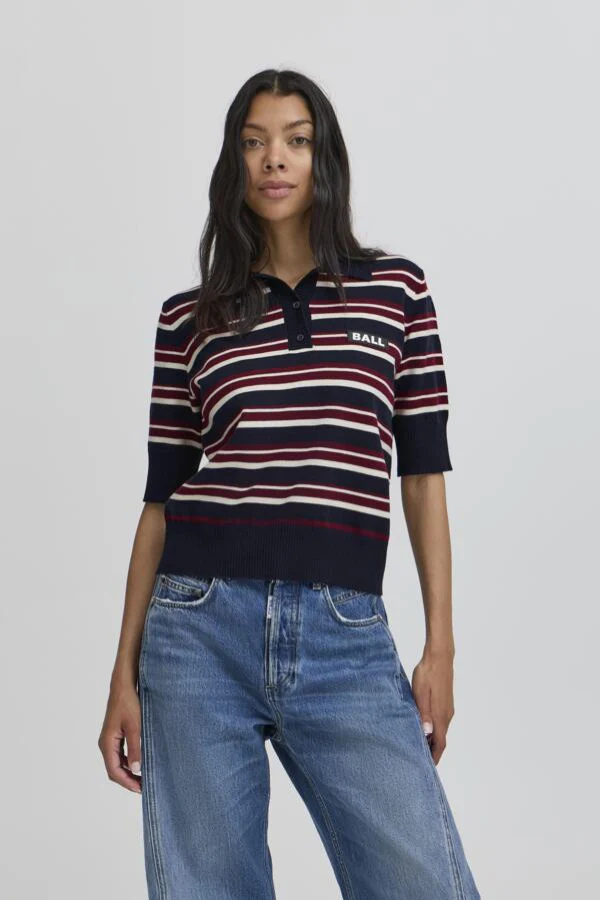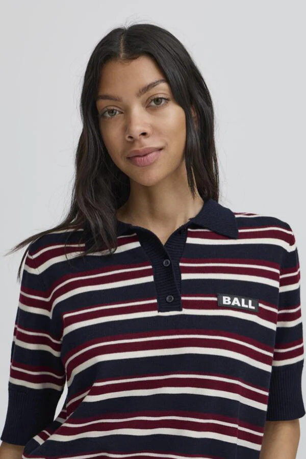 Een retro sporty look: de BANARIETTA KNIT SL POLO van BALL. Deze fijn gebreide polo met korte mouwen en streepdesign combineert een klassieke kraag met moderne kleuren en een cropped pasvorm. Gemaakt van een zachte mix nylon, polyester, acryl en wol die comfortabel draagt en perfect in vorm blijft. Draag met een denim rok of high-waist jeans voor een frisse, preppy outfit. Shop nu jouw nieuwe knit favoriet!
