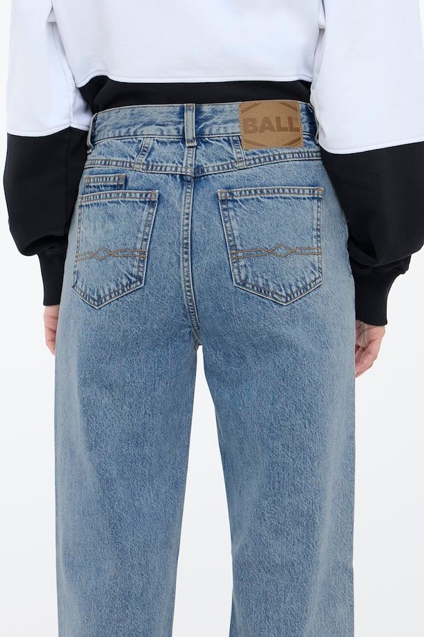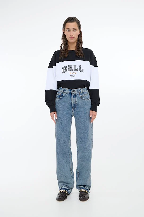 Deze jeans voor dames van BALL is een tijdloze jeans om aan je garderobe toe te voegen. Het is een jeans met een straight-fit pasvorm en gerafelde onderkant. De jeans is gemaakt van 100% katoen. Een mooi detail is het BALL logo bij de gulp. Shop nu in deze stijlvolle donkere wassing.