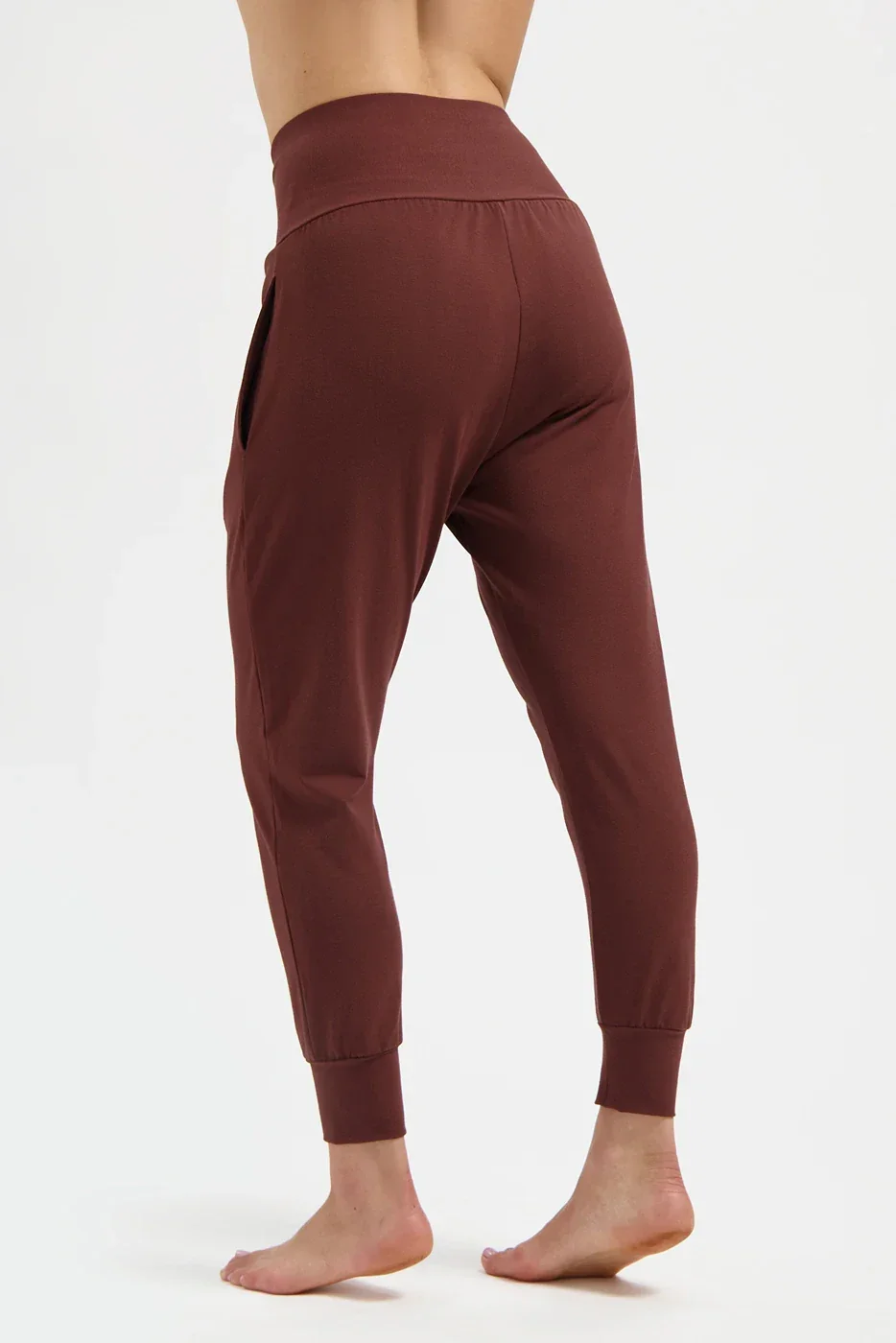 Hou je van loose-fit yogabroeken die je veel adem- en bewegingsvrijheid geven? Dan is de Bhumi Bamboe Yogabroek jouw perfecte match. De zachte heupband en enkelcuffs zorgen ervoor dat de broek goed blijft zitten, hoe je ook beweegt. De bamboemix voelt comfortabel aan, houdt je warm bij kou en juist lekker koel tijdens een intensieve yogales.