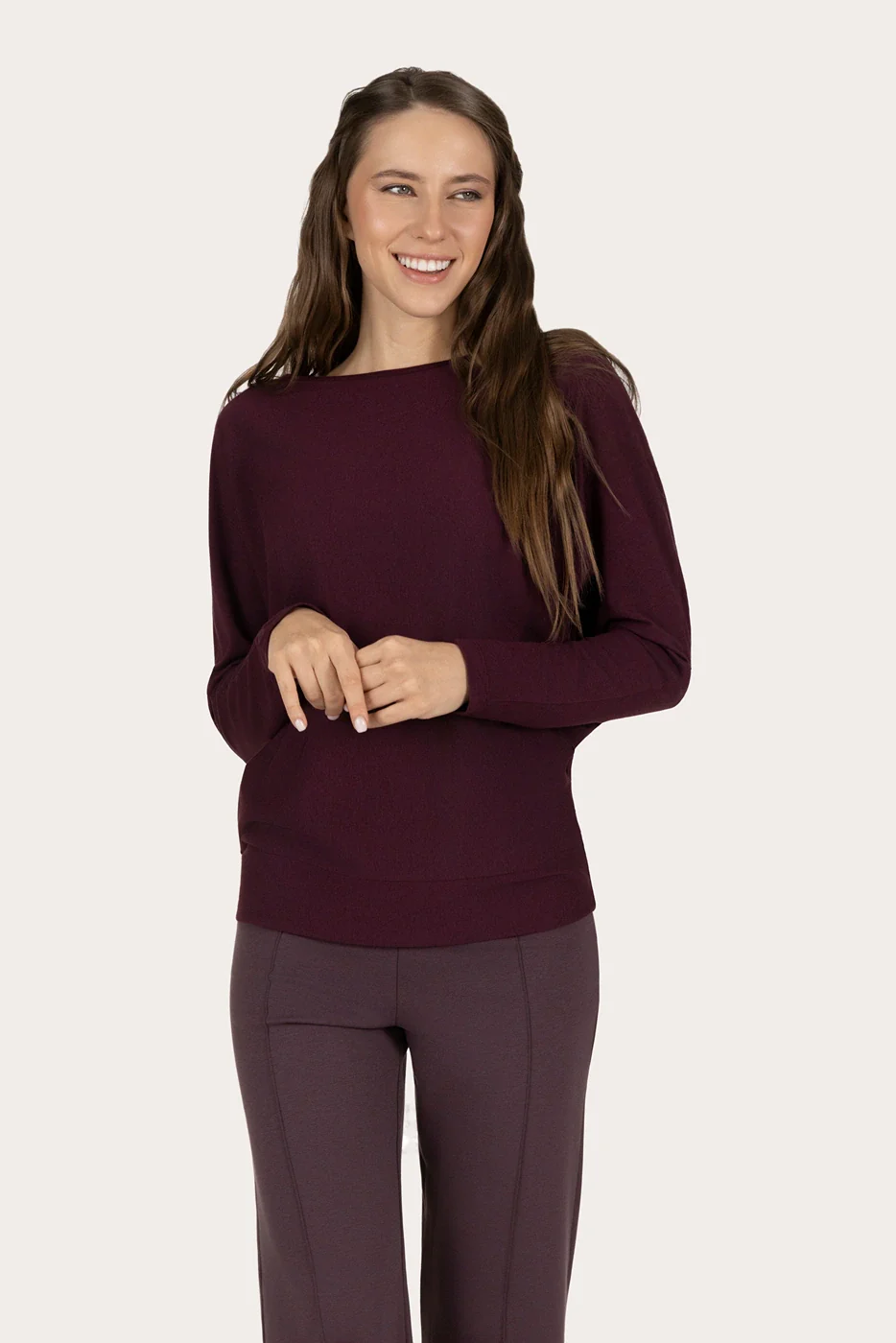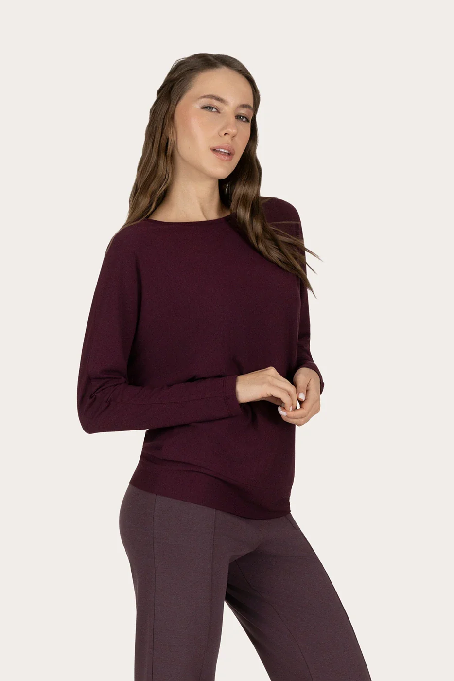 De Budhi yoga longsleeve is een dames shirt met lange mouwen. Deze duurzame longsleeve heeft een boothals en trendy batwing mouwen. De zachte stoffenmix van duurzaam bamboe en biologisch katoen is ademend, anti-bacterieel en temperatuurregulerend. Ideaal als extra laagje over je andere yoga wear.