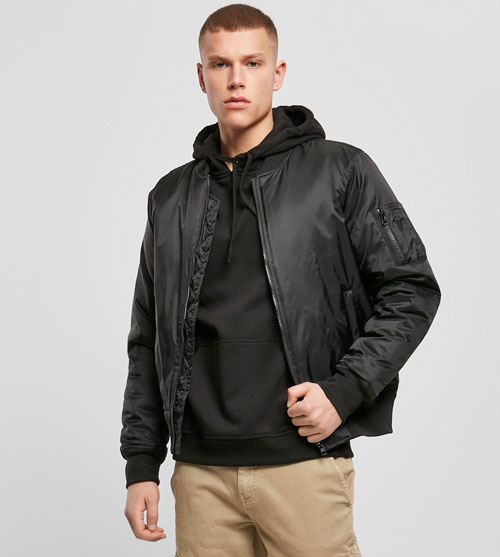 Verfijn je look met het Build Your Brand heren bomber jacket. Dit niet uit de mode rakende jacket geeft je door de steekzakken en rits op de mouw een hip uiterlijk. Het Build Your Brand heren bomber jacket kan in de nek worden bedrukt en is daarom geschikt om in te zetten als promotiekleding voor jouw bedrijf of als onderdeel van een eigen kledinglijn.