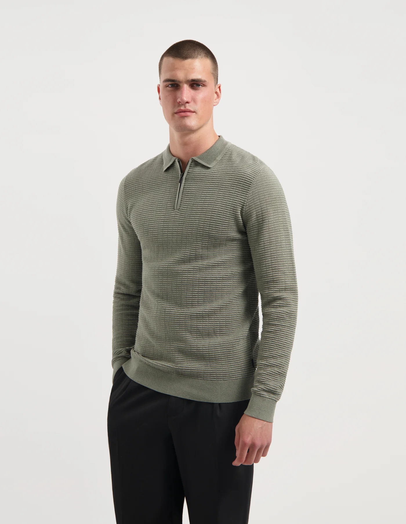 De CARLOS is een stijlvolle knit polo met lange mouwen, opstaande kraag en een ritsdetail voor een moderne twist. De horizontale structuur geeft de trui extra diepte en karakter. Gemaakt van 100% katoen, wat zorgt voor ademend comfort en een zachte feel. Draag de CARLOS op een nette broek of casual met jeans, shop ‘m nu bij ANTRACITE!