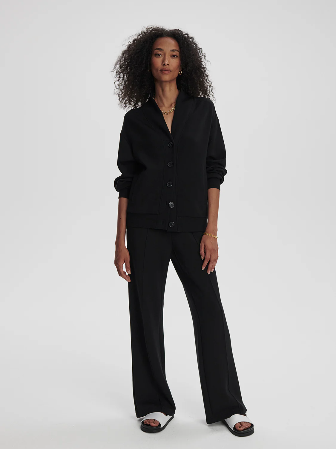 De Celeste Button Through Sweat in Black is een elegante aanvulling op je collectie, en een veelzijdige must-have voor elke dag. Gemaakt van ons kenmerkende DoubleSoft® materiaal, heeft deze cardigan-style sweatshirt een relaxed fit met afhangende schouders voor extra comfort. De moderne V-hals en tonale knopen aan de voorkant geven een verfijnd detail. Een perfecte keuze om te combineren met jeans of een rokje voor een stijlvolle, casual look.