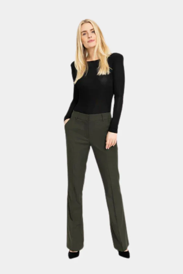 De CLARAFV 438 van FIVE UNITS is een stijlvolle damesbroek met een moderne tapered fit en een elegante, donkergroene melange kleur. Gemaakt van een comfortabele mix van polyester, gerecycled polyester, viscose en elastaan, biedt deze broek zowel structuur als flexibiliteit. De hoogwaardige stof zorgt voor een verfijnde uitstraling en draagt heerlijk zacht. Combineer met een blazer of knit voor een effortless chique look. Shop nu jouw nieuwe favoriet!