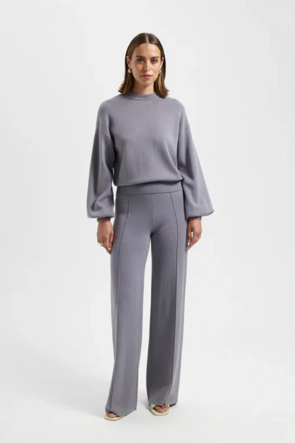 De CORINE broek van AVEC ĒLAN is een knitted broek met een zachte en comfortabele pasvorm. De wijde pijpen, het elastiek in de taille en de zichtbare naad aan de voorkant zorgen voor een stijlvolle uitstraling. Combineer de CORINE met een top van AVEC ĒLAN in dezelfde kleur voor een complete knitted look.