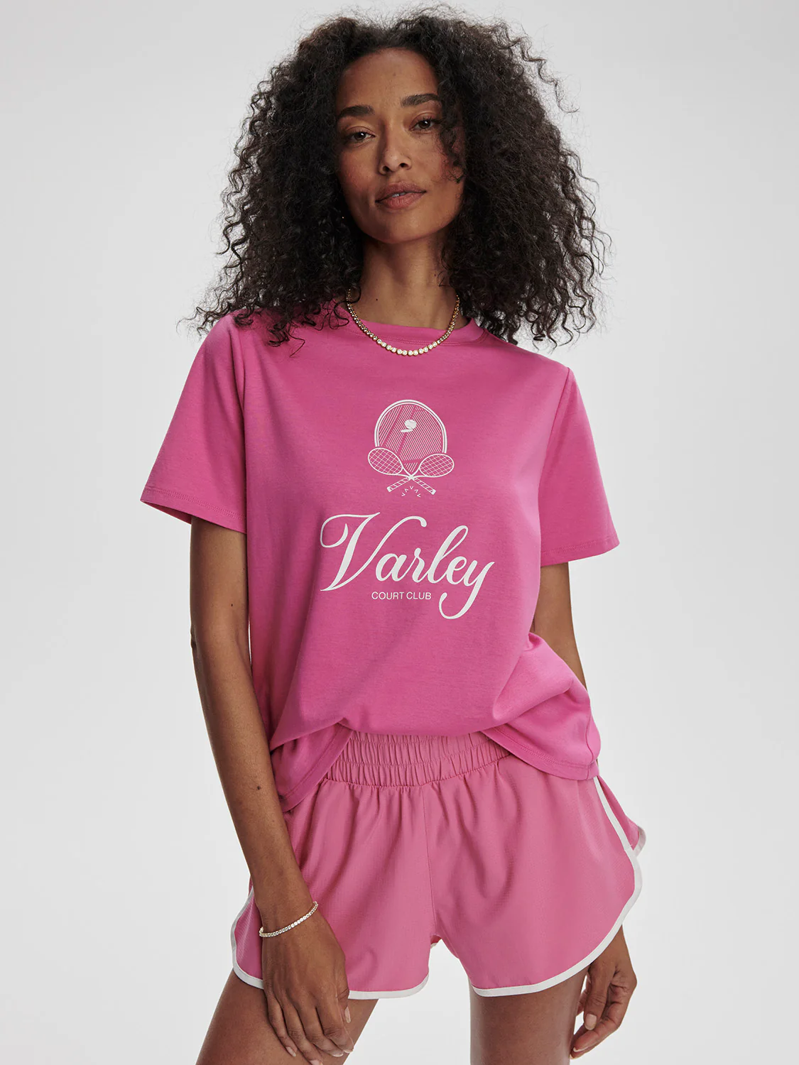 De Coventry Branded Tee biedt dagelijks comfort, verrijkt met de iconische Varley court club print. Dit t-shirt heeft een standaard pasvorm en is gemaakt van zacht Pima Cotton Pique. Geïnspireerd op vintage varsity stijl, is het afgewerkt met een gebrandmerkte racquet-insigne op de borst voor een sportieve, stijlvolle look.