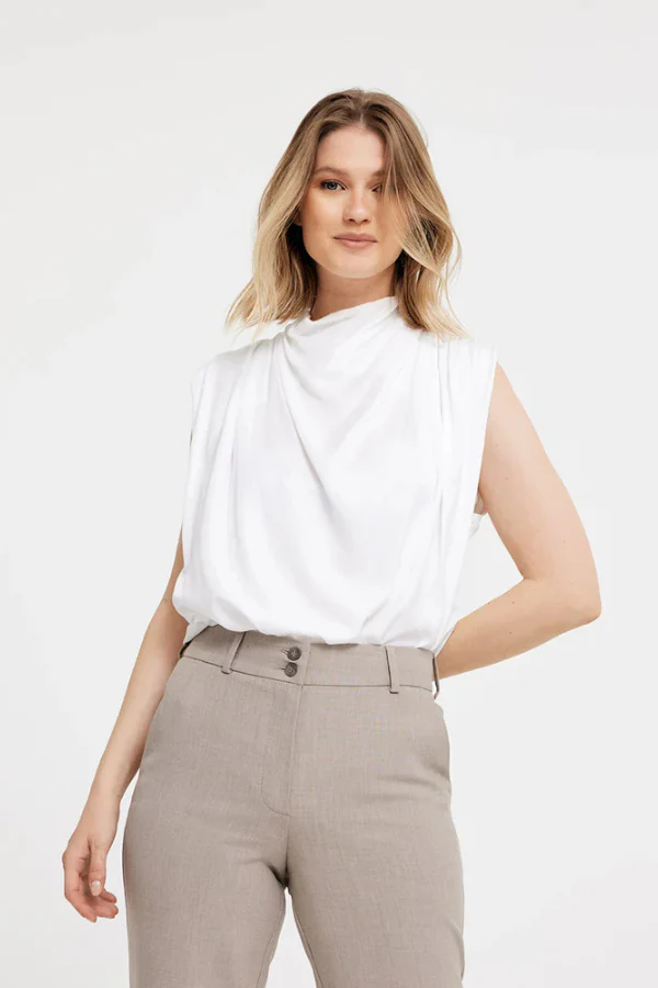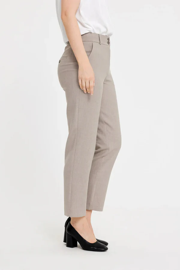 Comfortabel en stijlvol, dat is de DAPHNE broek voor dames van FIVEUNITS. De broek valt high waist, in combinatie met de fijne rechte pasvorm en het zachte viscose materiaal ga jij gegarandeerd comfortabel de dag door. Mooie details zijn de twee knopen aan de voorkant en de paspelzakken aan de achterkant. Draag in combinatie met een mooie blouse voor een nette gelegenheid of een chique top voor een avondje uit. Shop nu in deze makkelijk te combineren beige kleur.