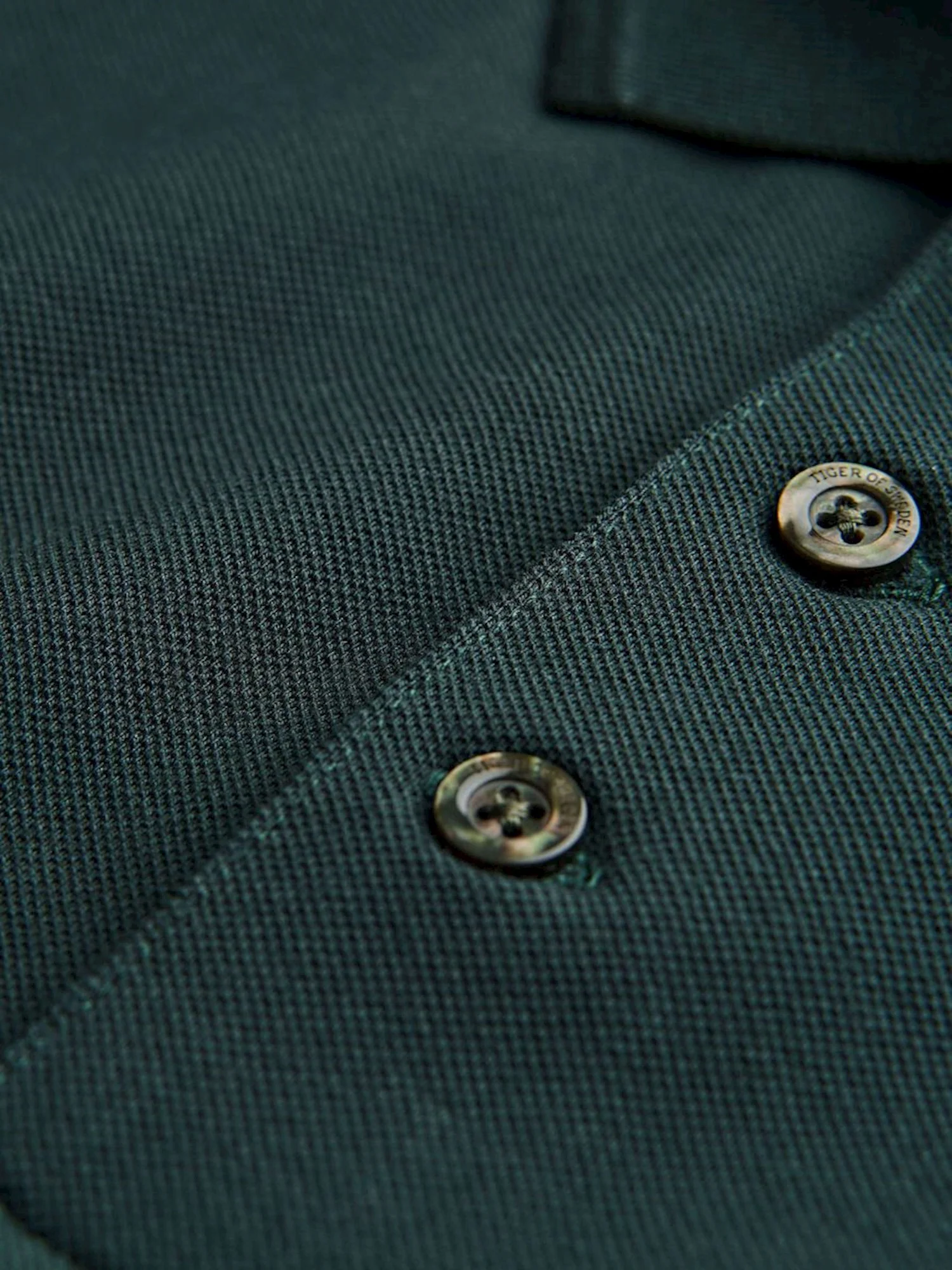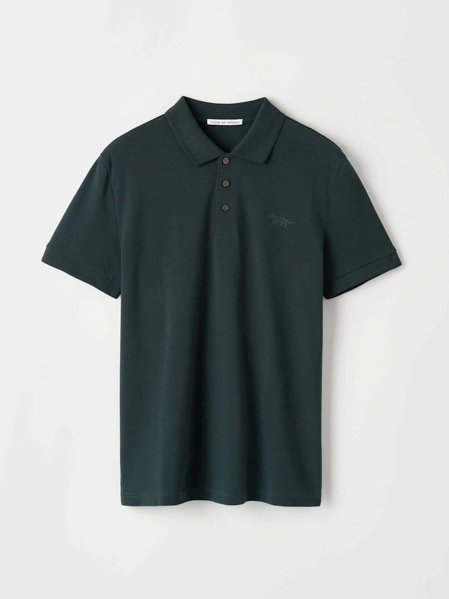 De DARIOS van TIGER OF SWEDEN is een slim-fit polo, gemaakt van katoen piqué. De polo heeft drie vaste knoopsluitingen, een plat gebreide kraag en splitjes aan de zijkanten. Het katoen piqué materiaal geeft een grovere en rijke structuur. Een mooi detail is het geborduurde logo van TIGER OF SWEDEN op de borst.