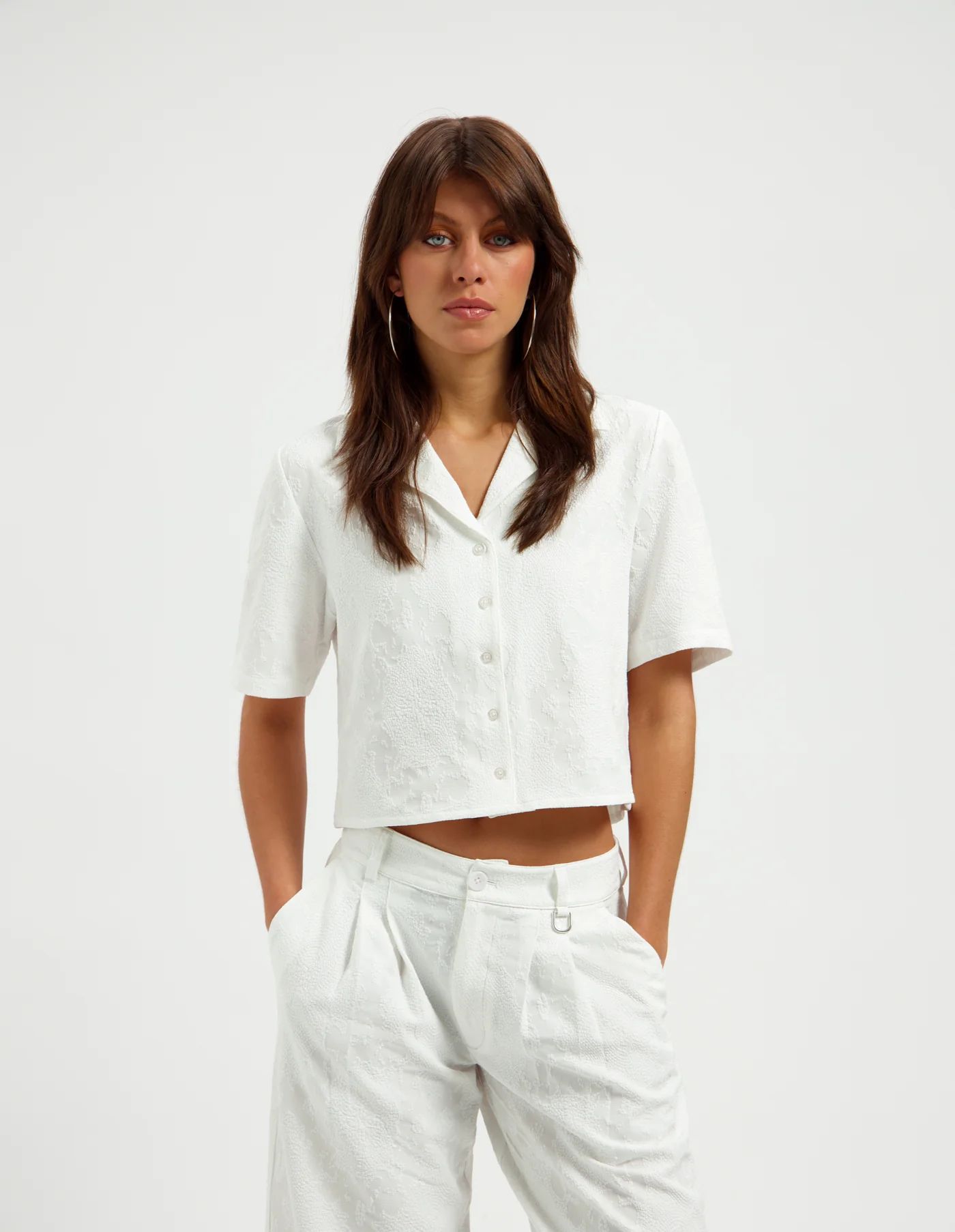 De DIMA BLOUSE van AZULAE is een verfijnd en vrouwelijk item met een rustige, elegante uitstraling. Het korte silhouet en de subtiele textuur geven de blouse een moderne twist, terwijl de kraag en knoopsluiting zorgen voor een tijdloos karakter. Gemaakt van 100% polyester biedt de stof een lichte structuur, een mooie vormvastheid en comfortabel draaggevoel. Combineer de dima blouse met de rosie shorts of een elegante pantalon voor een stijlvolle look en ontdek dit item nu in onze collectie.