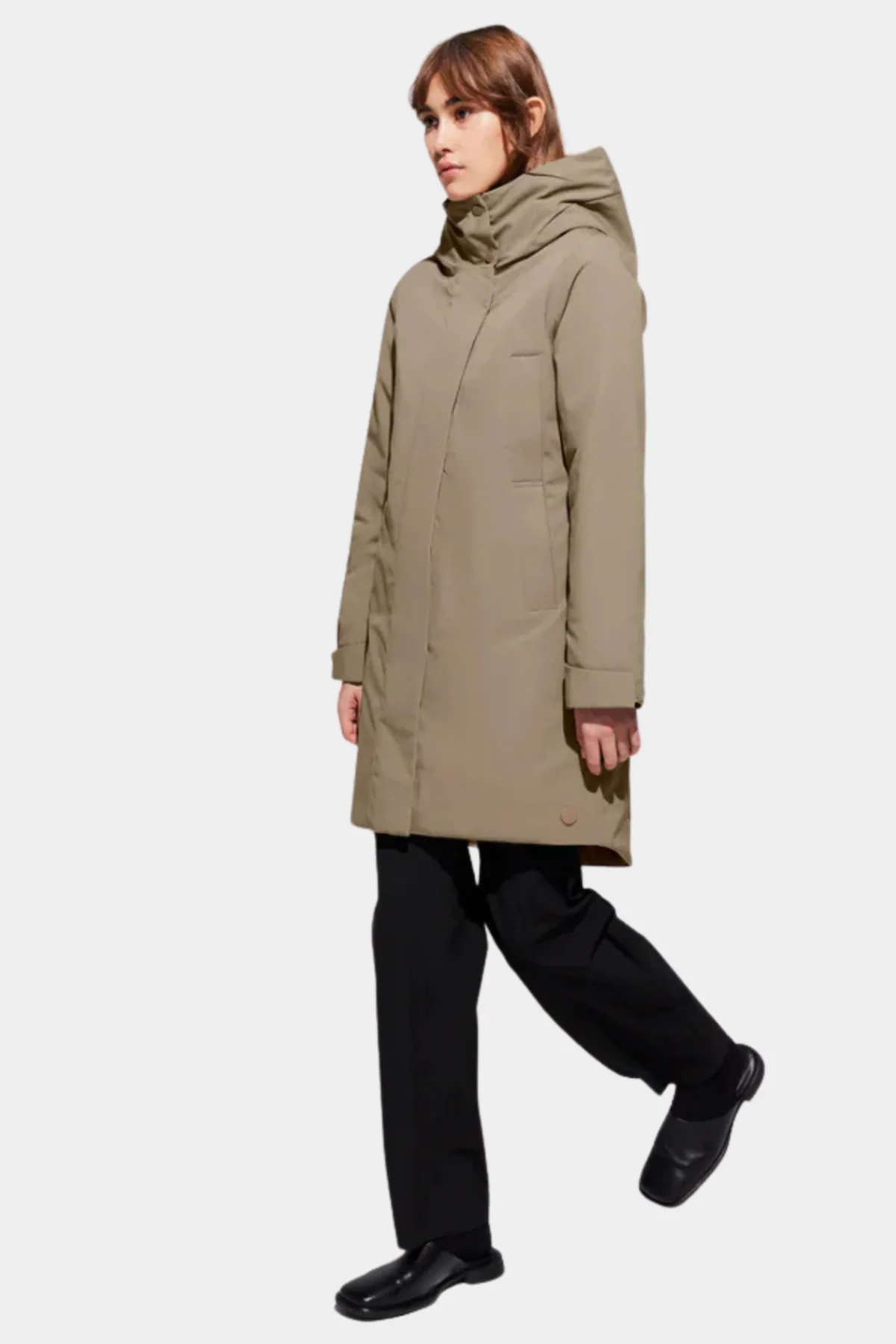De ELINE jas voor dames van ELVINE is een jas met een slim-fit pasvorm. De jas is gemaakt van winddicht & waterafstotend materiaal. Daarnaast is de jas voorzien van een capuchon met elastisch trekkoord, kraag met drukknoopsluiting, rits aan de voorkant met magnetische klep en de vier zijzakken kunnen dicht via een ritssluiting. Ook hebben de uiteindes van de mouwen een verstelbare klittenband functie. Het materiaal van de ELINE voelt stevig aan met een lichte stretch en zacht matte afwerking.