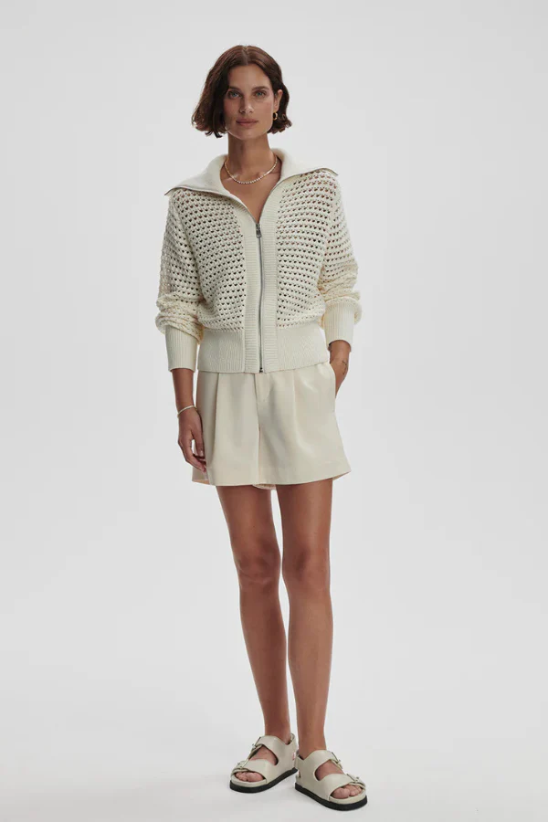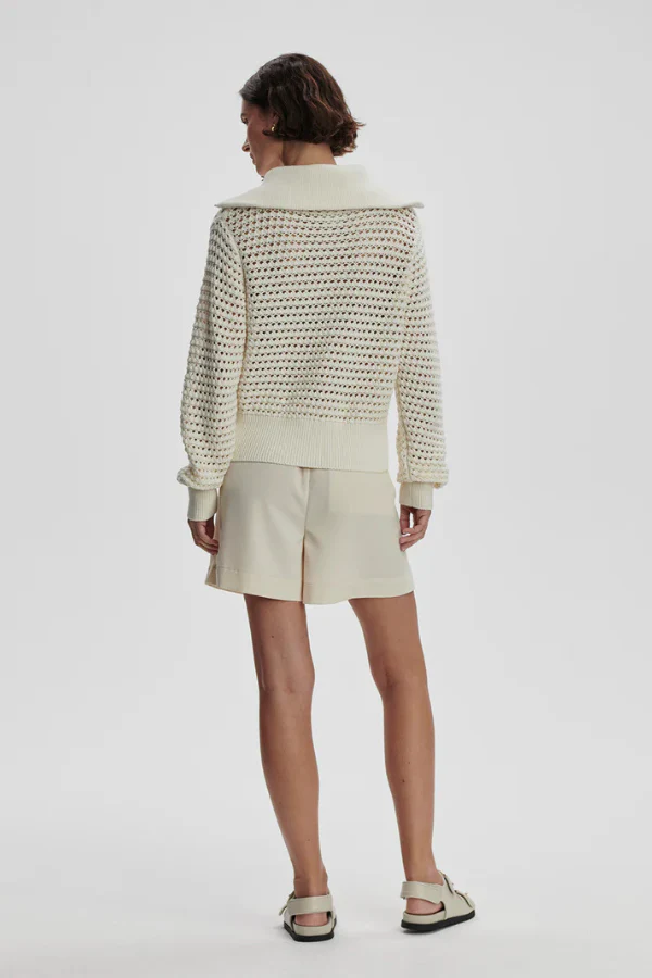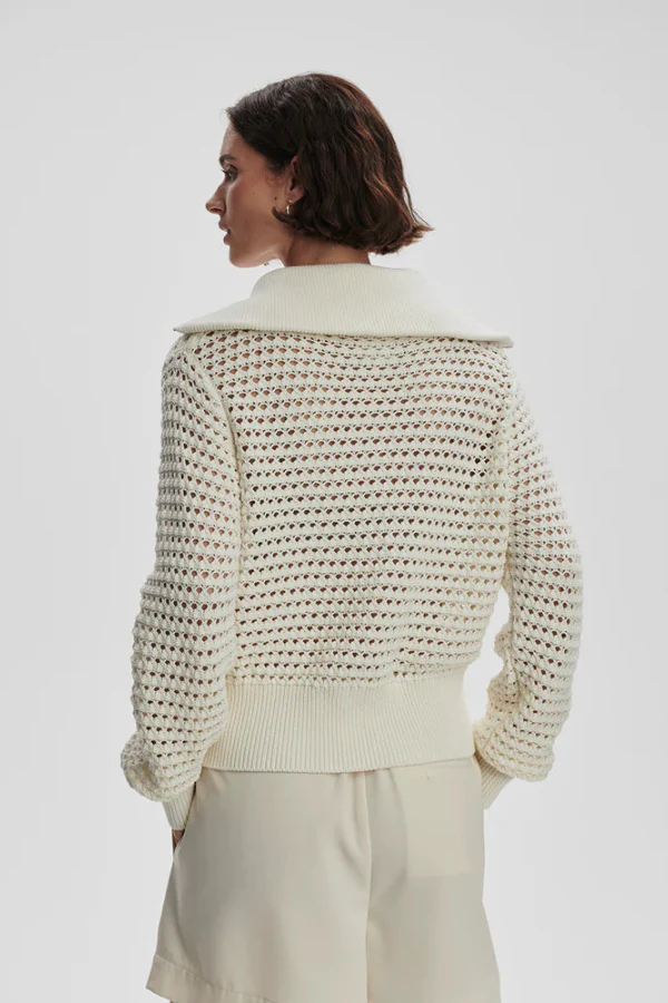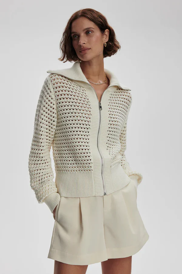 De Eloise Full Zip Knit is de perfecte overgangslaag, geweven van 100% katoen. Deze pointelle gebreide jas heeft een signature oversized kraag en een diepe ribgebreide zoom, die het ontwerp een verfijnde uitstraling geven. Gemaakt van een geweven open structuur, is de Eloise lichtgewicht en ideaal om te dragen als gelaagd item. Een veelzijdige en comfortabele keuze voor de koelere maanden, die moeiteloos stijl toevoegt aan je look.