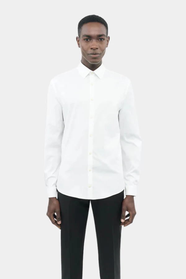 De FILBRODIE is een stijlvol overhemd met een extra slim fit pasvorm die het lichaam nauwsluitend zit. Het is afgewerkt met een klassieke puntkraag, een vierkante manchet met twee knopen voor verstelbare pasvorm en een strakke Franse knopenlijst voor een minimalistische look.