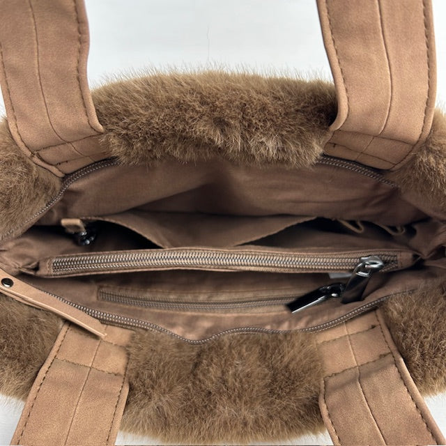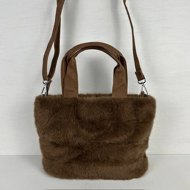 Wat een geweldig shoppertje! De tas is leuk afgewerkt met furry en wordt geleverd met een afneembare band waardoor je hem op meerdere manieren kunt dragen. Het tasje heeft naast een groot vak met ritssluiting nog meerdere vakjes binnenin waarvan twee met ritssluiting.