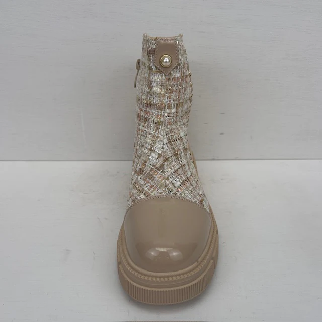 Wat zijn ze geweldig! Deze superleuke boots zijn afgewerkt met een trendy tweed motief en gouden details. Ze vallen op maat en hebben een rits aan de binnenkant voor de eenvoudige instap.