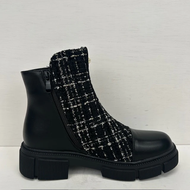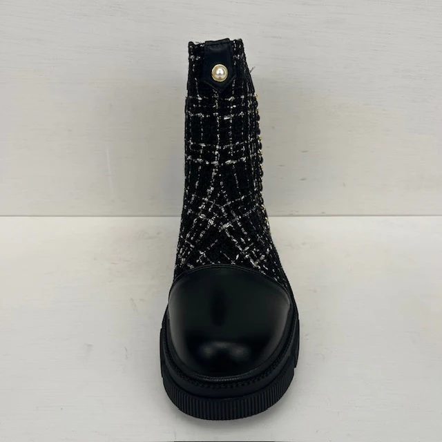 Wat zijn ze geweldig! Deze superleuke boots zijn afgewerkt met een trendy tweed motief en gouden details. Ze vallen op maat en hebben een rits aan de binnenkant voor de eenvoudige instap.