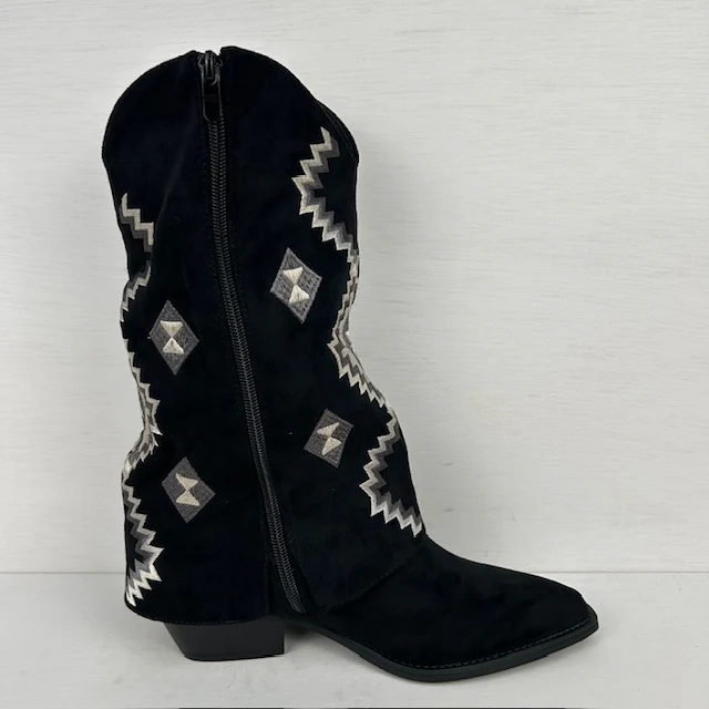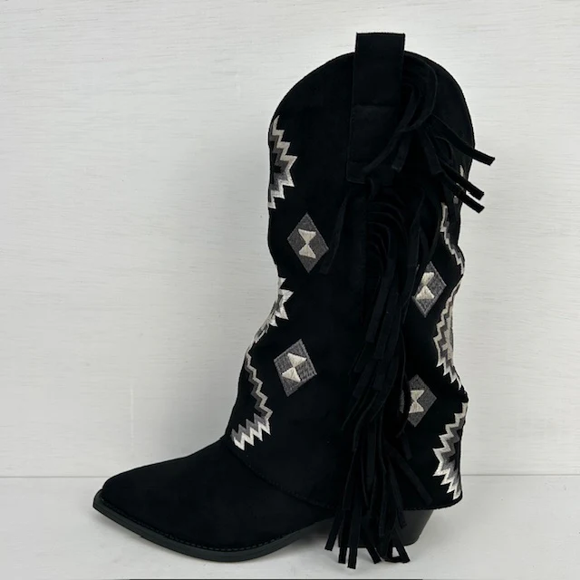Supergave suèdine cowboylaarzen! De laarzen hebben een leuke trendy flap met leuke details en franjes. Ze vallen op maat en hebben een ritsje aan de binnenkant voor de eenvoudige instap.