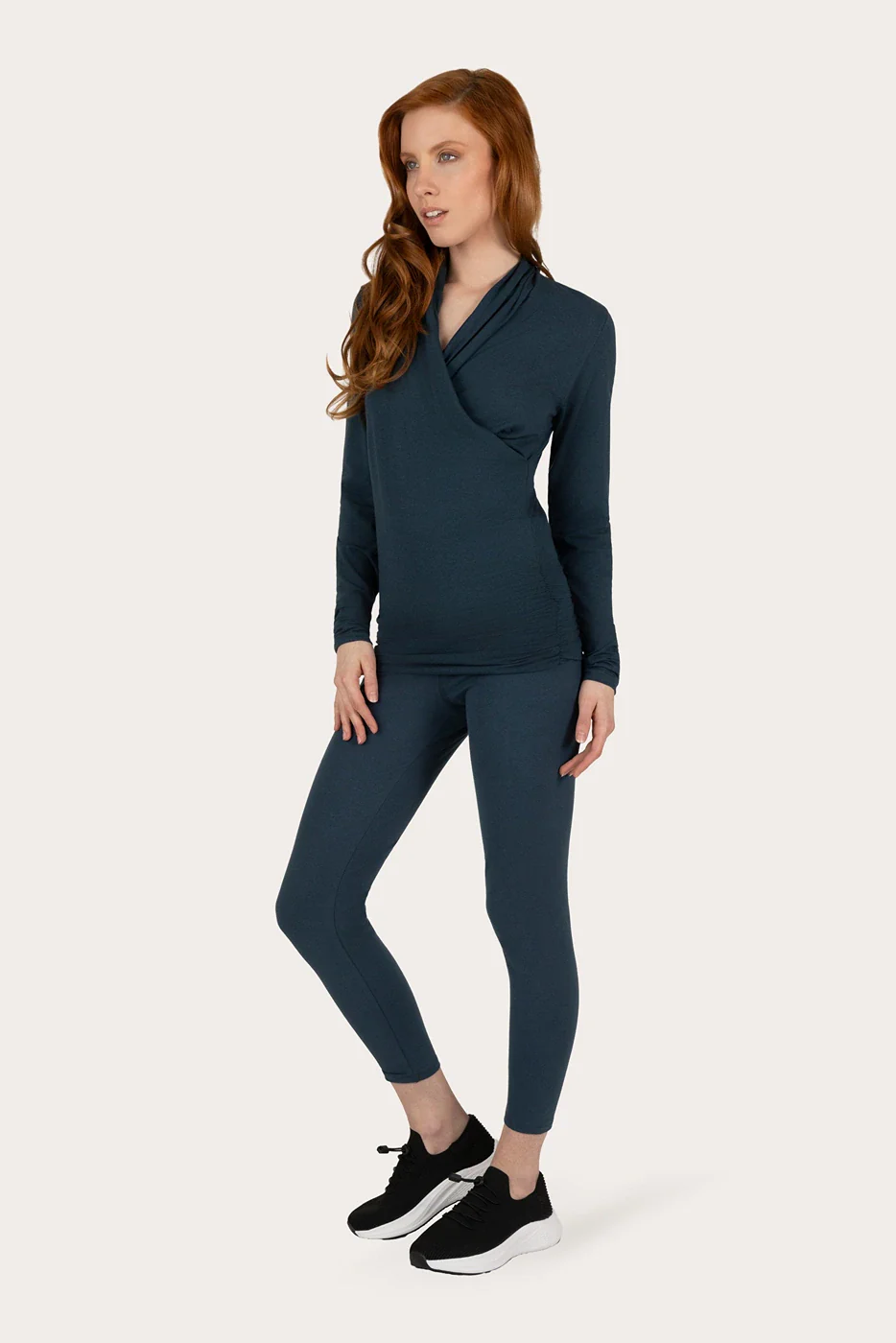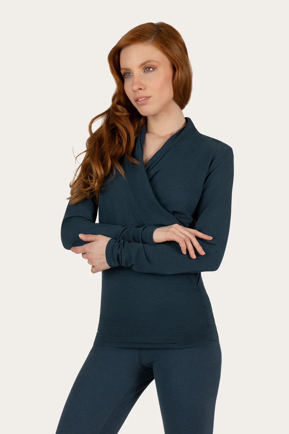 De Good Karma Bamboe Yoga Wikkeltop in Orion is jouw go-to voor comfort en stijl, zowel op de mat als daarbuiten. Deze elegante dames yoga top met overslag heeft een flatterende pasvorm die je vrouwelijke vormen mooi accentueert. De zachte, ademende stof van bamboe en biologisch katoen beweegt soepel met je mee in elke houding.