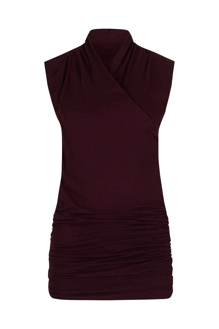 Good Karma Biologisch Katoenen Yoga Top in de kleur Fig is een elegante yoga top met V-hals, opstaande kraag en plooidetails. Gemaakt van zacht biologisch katoen met extra lengte voor een flatterende fit. Ideaal voor yoga of als stijlvolle loungewear.