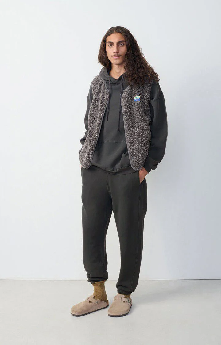 De HOKTOWN van AMERICAN VINTAGE in de kleur Charcoal Melange is een must-have voor liefhebbers van gelaagde outfits. Dit gewatteerde mouwloze vest, gemaakt van 100% polyester (gerecyclede vezels), biedt de perfecte balans tussen warmte en bewegingsvrijheid. De casual, losvallende pasvorm geeft een moeiteloos stijlvolle uitstraling, terwijl de opstaande kraag extra comfort biedt. Met een ritssluiting of drukknopen afhankelijk van het model, is dit vest een veelzijdige toevoeging aan je garderobe. Draag het over een longsleeve of sweater voor een moderne en speelse look.