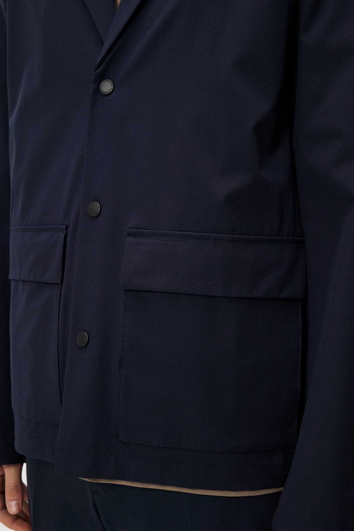 Deze nieuwe blazer van J. LINDEBERG is perfect geschikt voor jouw eerstvolgende feestje of nette gelegenheid. Je kunt de JACK WR RIPSTOP erg goed solo dragen, maar je kunt hem ook combineren met de SOREN WR RIPSTOP PANTS van J. LINDEBERG voor een complete look. Draag een net overhemd onder deze blazer en kom stijlvol en formeel de dagen door.