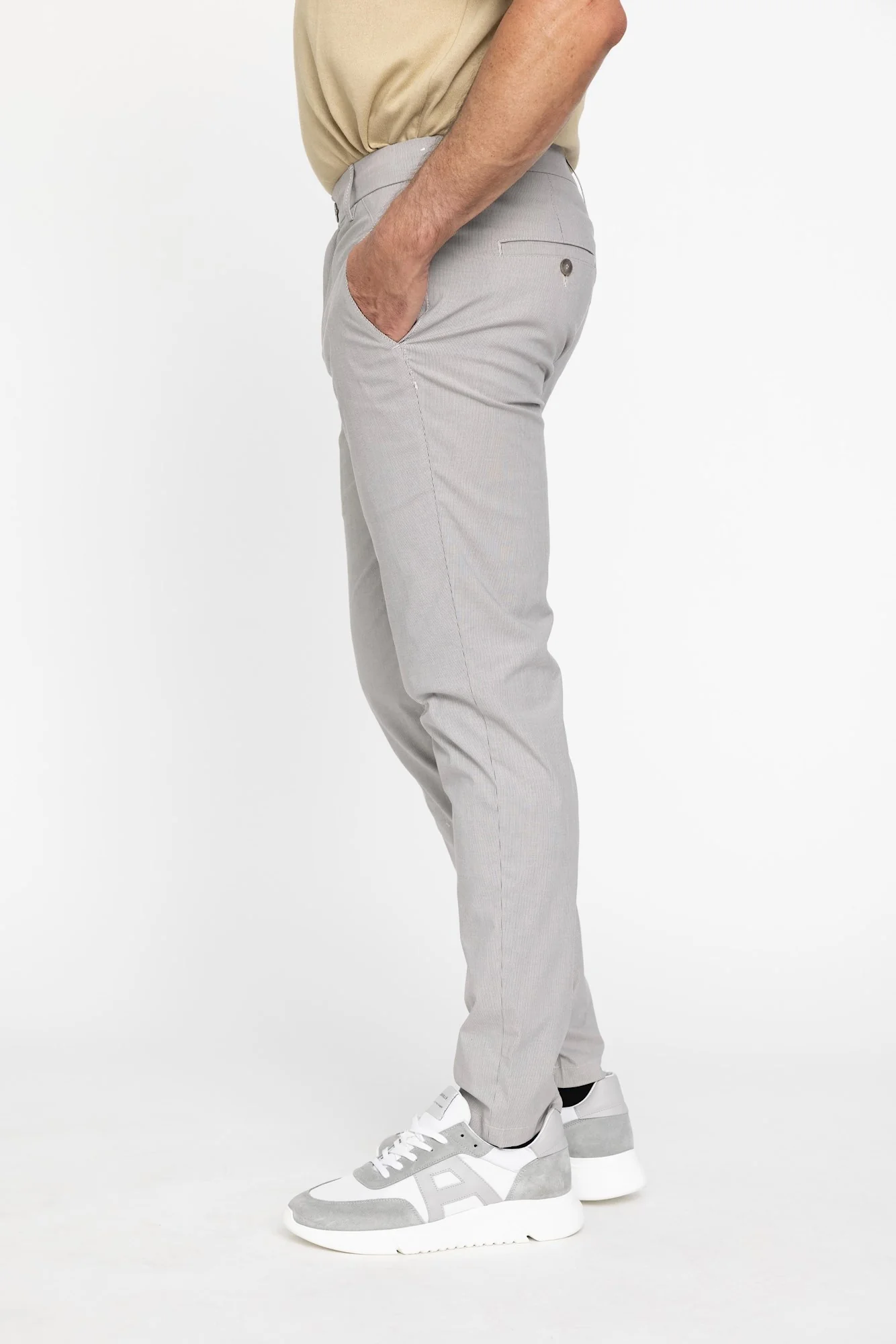 De JOSH broek van PLAIN is een slim-fit broek voor heren. De broek is gemaakt van een katoenmix, heeft schuine zijzakken, paspelzakken aan de achterkant en riemlussen. Daarnaast valt de broek mid-waist en heeft de broek een normale lengte. Het subtiele streep design geeft de broek een unieke touch.