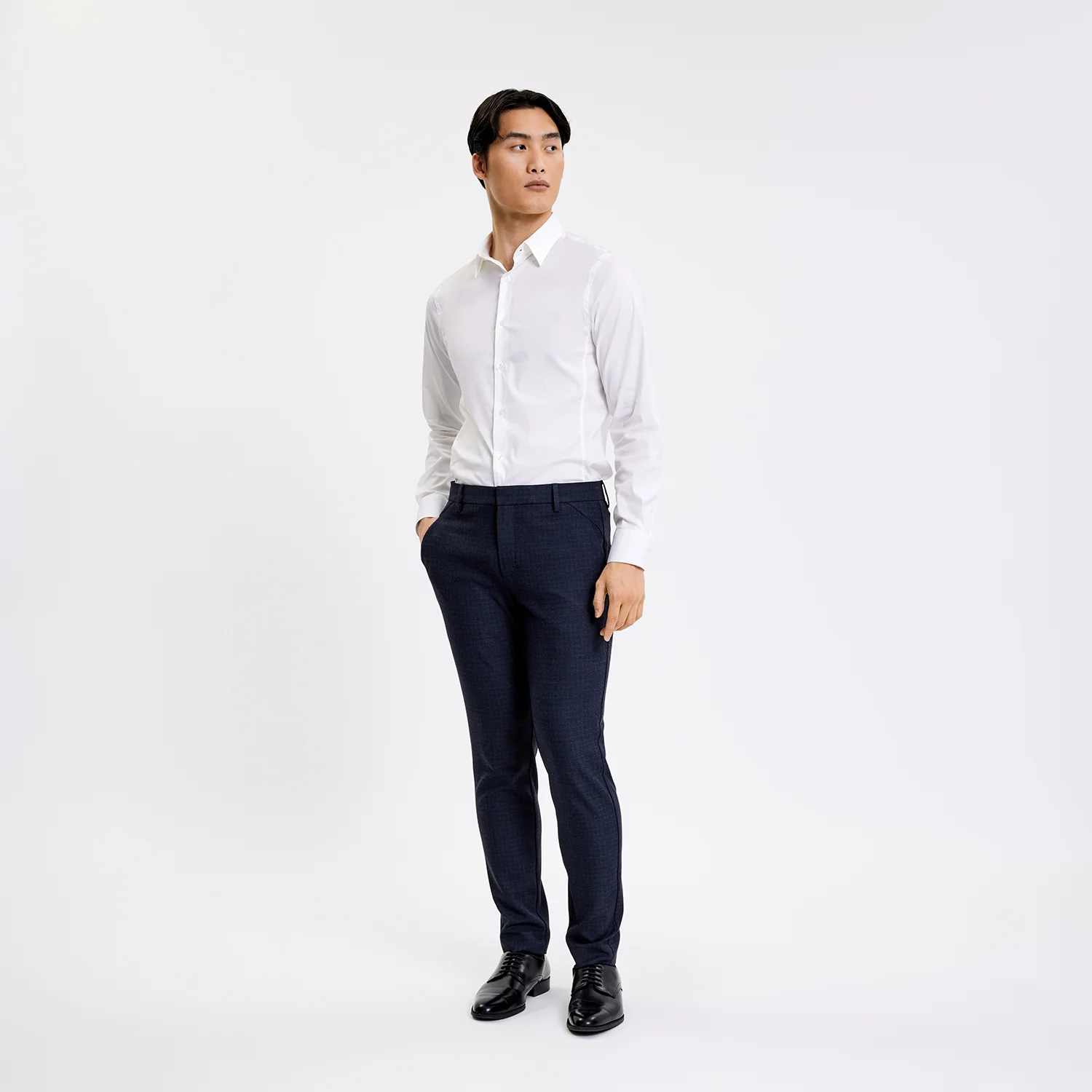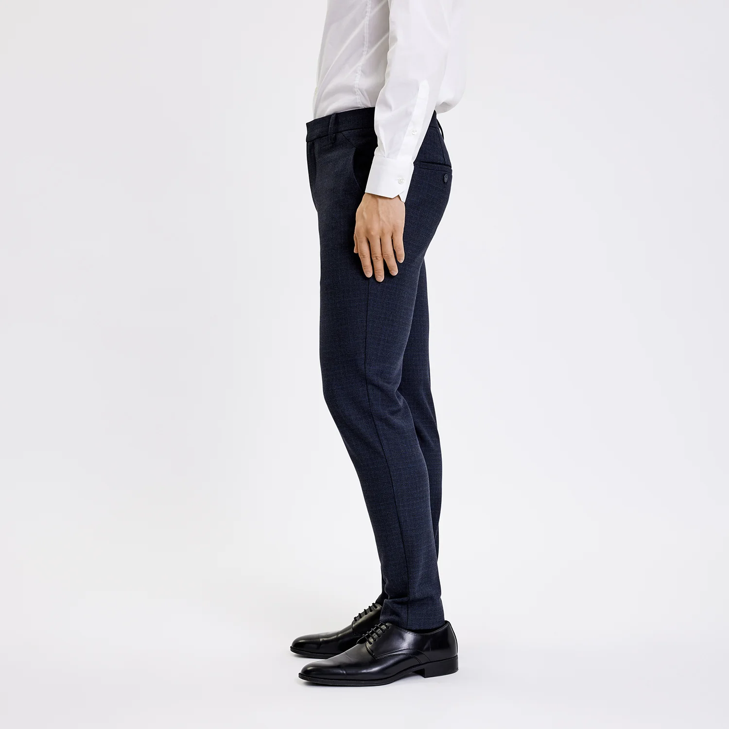 De JOSH is de perfecte broek voor dagelijks gebruik. Met een slim-fit pasvorm, normale lengte en een mid-waist design biedt deze broek zowel stijl als comfort. De flexibele taillehoogte maakt het mogelijk om de broek te dragen zoals jij dat prettig vindt, van laag op de heupen tot hoog in de taille. Deze veelzijdigheid zorgt voor extra comfort. De broek is voorzien van schuine zijzakken en paspelzakken aan de achterkant, wat zorgt voor een klassieke uitstraling.