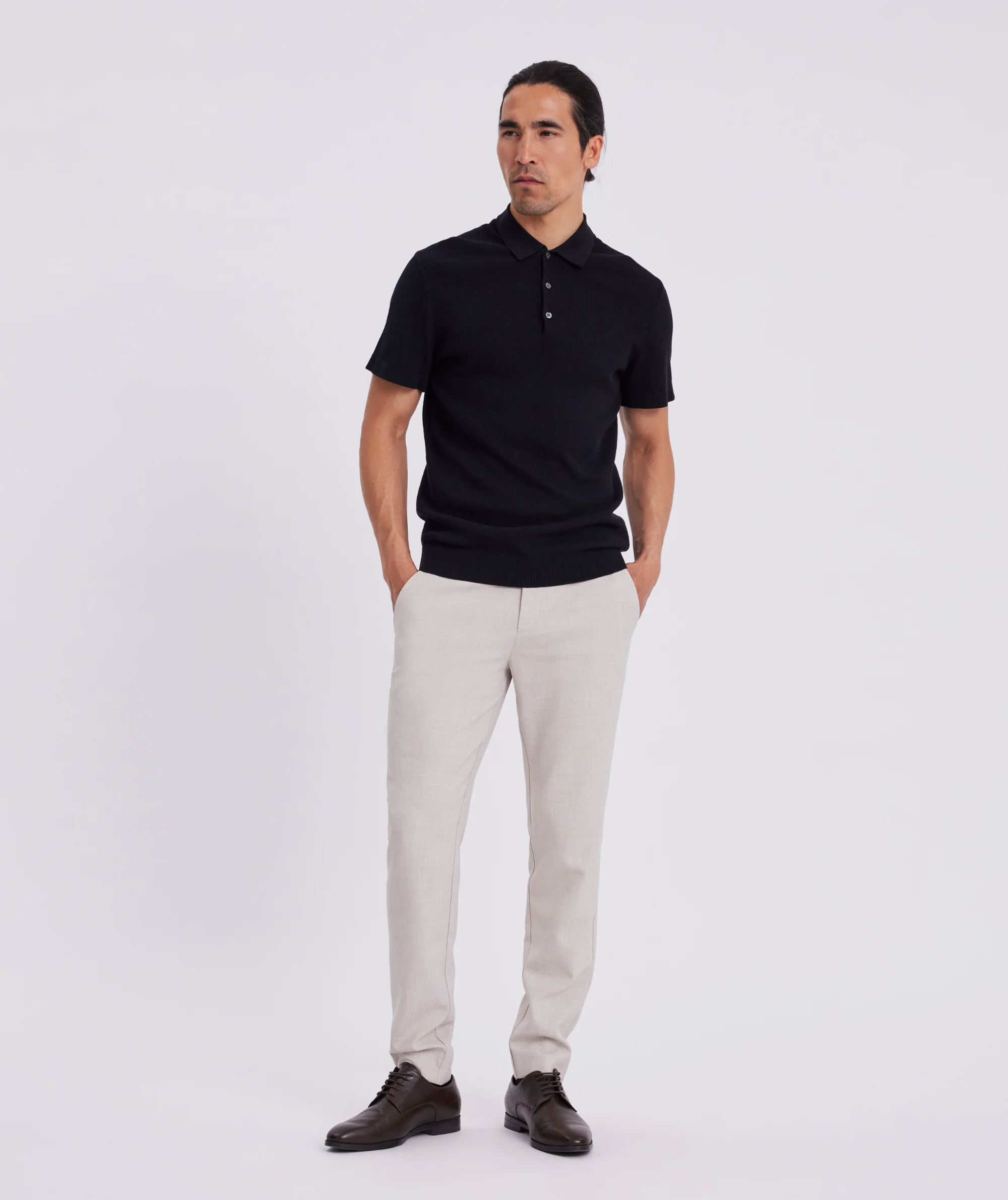 De JoshPL 085 van PLAIN zijn slim-fit broeken met een klassieke uitstraling. Ze zijn zorgvuldig ontworpen met een verborgen haak- en oogsluiting, schuine steekzakken aan de voorkant en paspelzakken aan de achterkant. De broek is voorzien van riemlussen en subtiele driehoekige inzetten net onder de tailleband, wat zorgt voor een verfijnde afwerking. Een veelzijdige essential die moeiteloos combineert met zowel casual als formele looks.