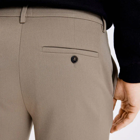 Deze stijlvolle broek van PLAIN zorgt voor dagelijks comfort & stijl. De broek heeft een slim-fit pasvorm, normale lengte en valt mid-waist. De flexibele taillehoogte zorgt ervoor dat je de broek kan dragen op de manier hoe jij het wilt, van lager op de heupen tot hoger in de taille. Deze functionaliteit zorgt voor extra comfort. Details van de broek zijn de schuine zijzakken en paspelzakken aan de achterkant.