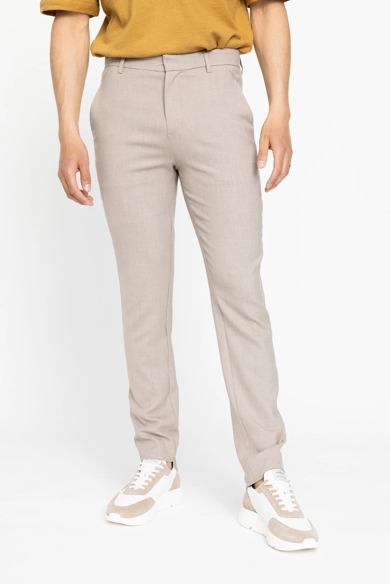 Comfortabele stretch kwaliteit is waar de JOSH broek van PLAIN bekend omstaat. Deze beige kleur is stijlvol en perfect passend bij de lente en de zomer. De broek heeft een klassiek design met een driehoekig detail boven de zakken. Op de achterkant zitten twee zakken met een donkere knoop.