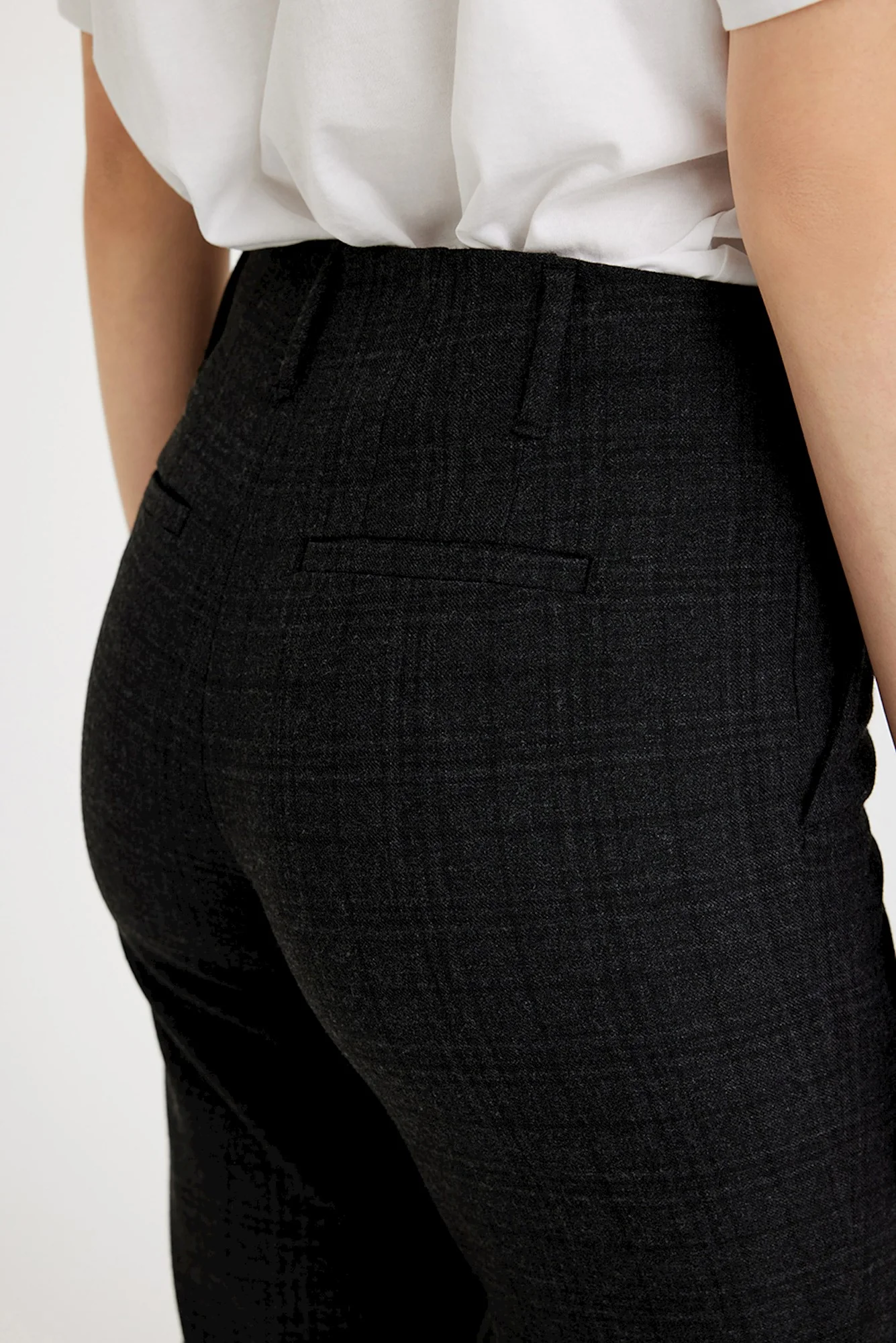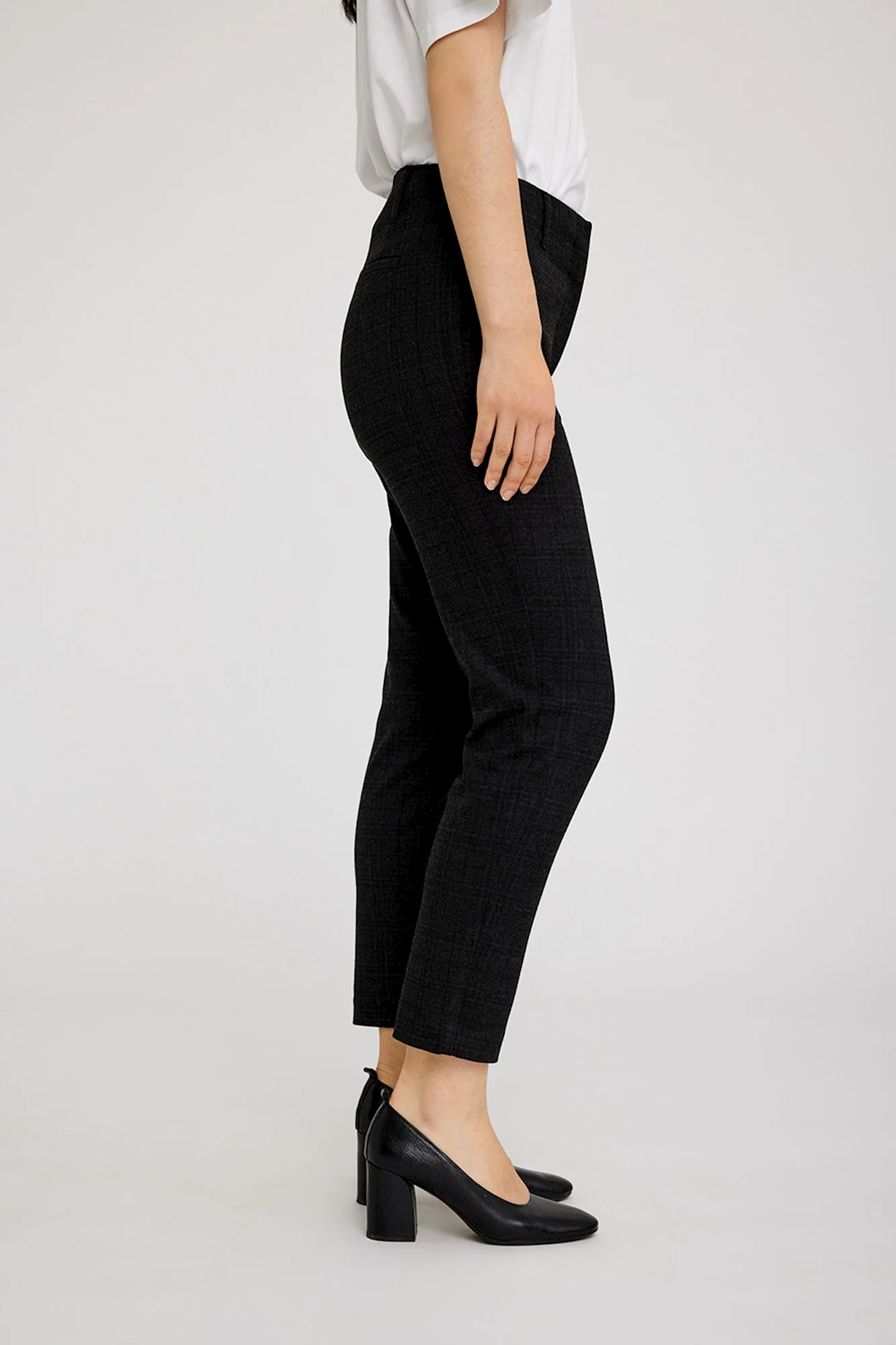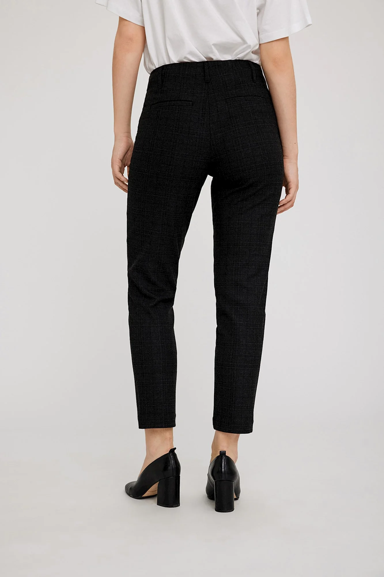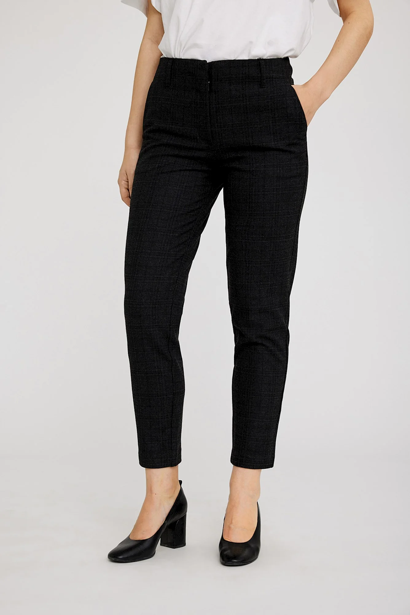 Stijlvol en comfort! Dat is de JULIA pantalon voor dames van FIVE UNITS. De kwaliteit van de broek is rekbaar en geeft comfort aan je stijlvolle outfit. De JULIA heeft een toelopende pasvorm met middelhoge taille en valt tot net boven de enkels. De zwarte kleur in combinatie met het subtiel geruite design, geeft de broek een klassiek uitstraling.