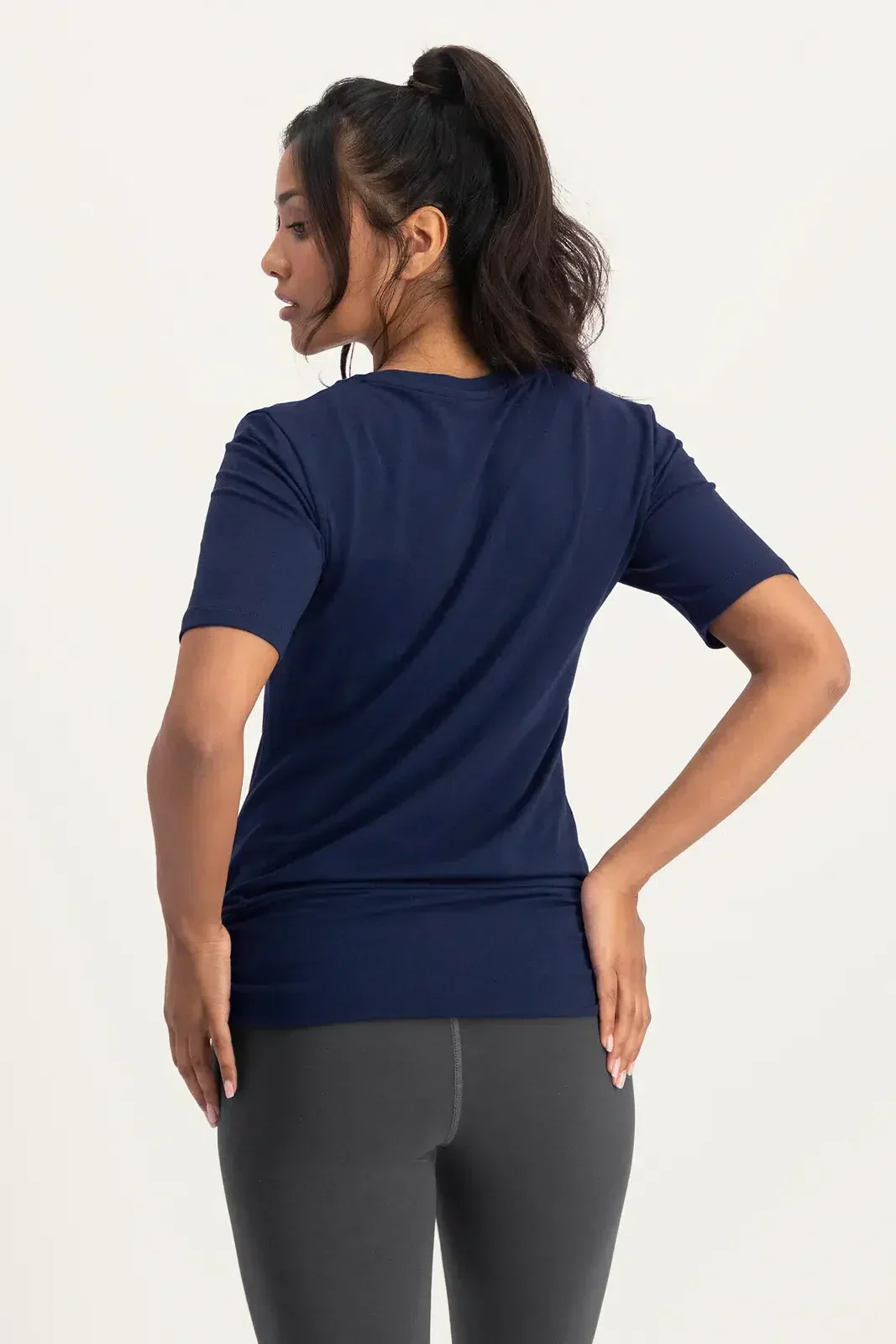 De Kami yoga tee heeft een ronde hals en mouwen die net boven je elleboog vallen. Door de heupband weet je zeker dat je shirt in alle asana’s die je uitvoert goed blijft zitten. Het yoga shirt is gemaakt van een zachte mix van bamboe en biologisch katoen, van nature dry fit en lekker ademend.