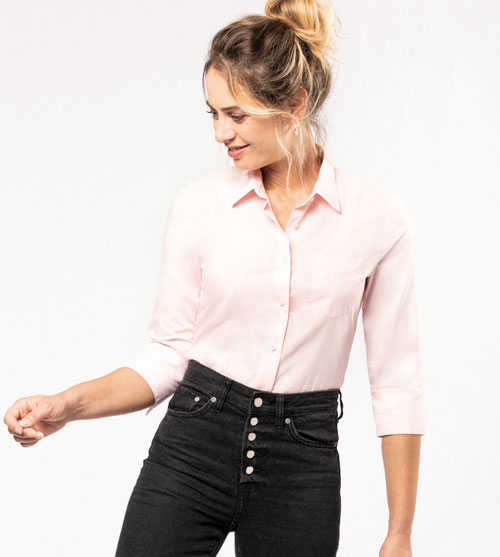 Het comfortabele en stijlvolle Kariban 3/4 Mouwen shirt is gemaakt van polykatoen en is daarom gemakkelijk te onderhouden. De toon op toon knopen, afgeronde boord aan de onderkant en het borstzakje in v-vorm zorgen voor een elegante en vrouwelijke uitstraling. Het Kariban 3/4 Mouwen shirt is beschikbaar in 13 verschillende kleuren en geeft daarmee altijd een passende uitstraling voor jouw bedrijf.