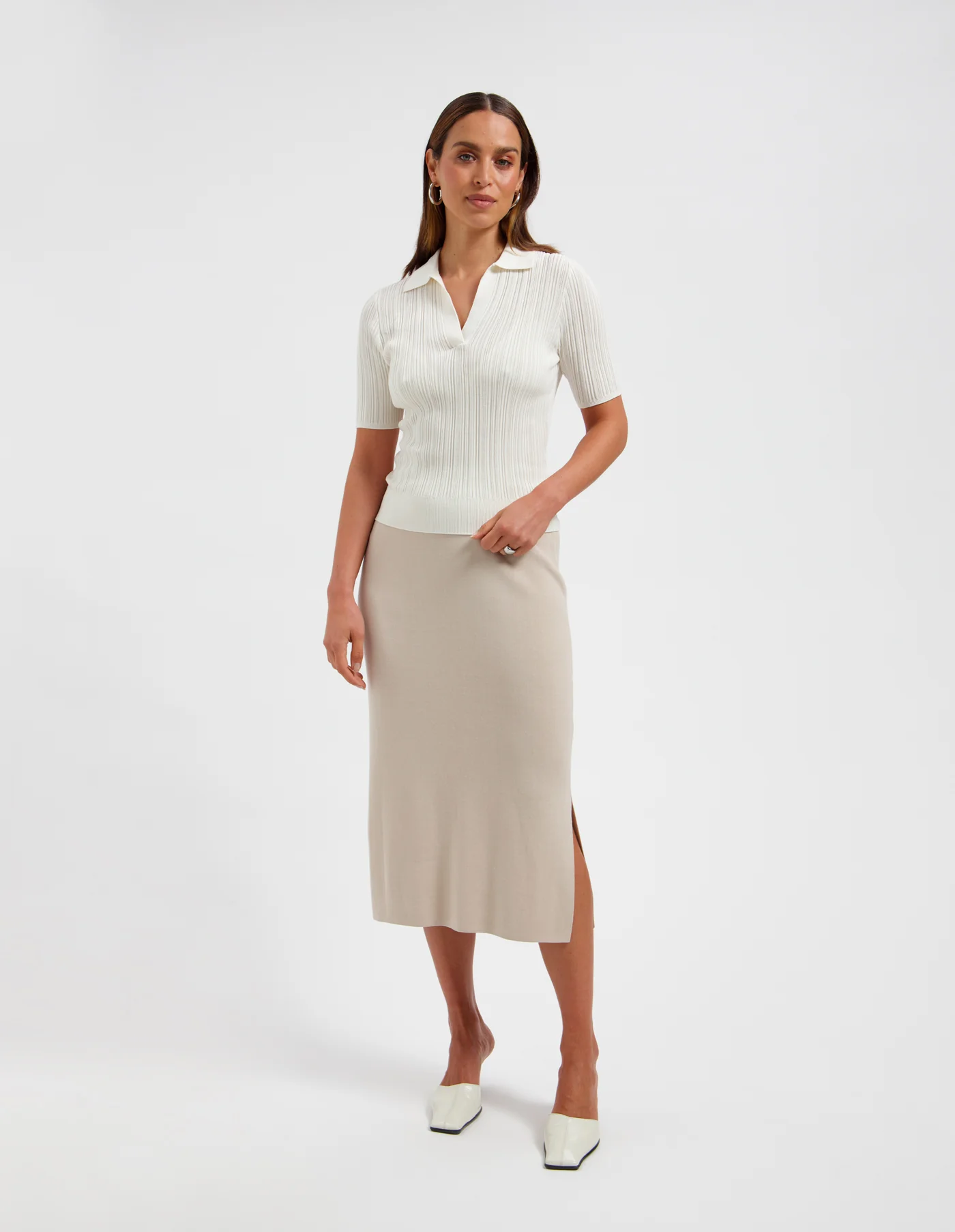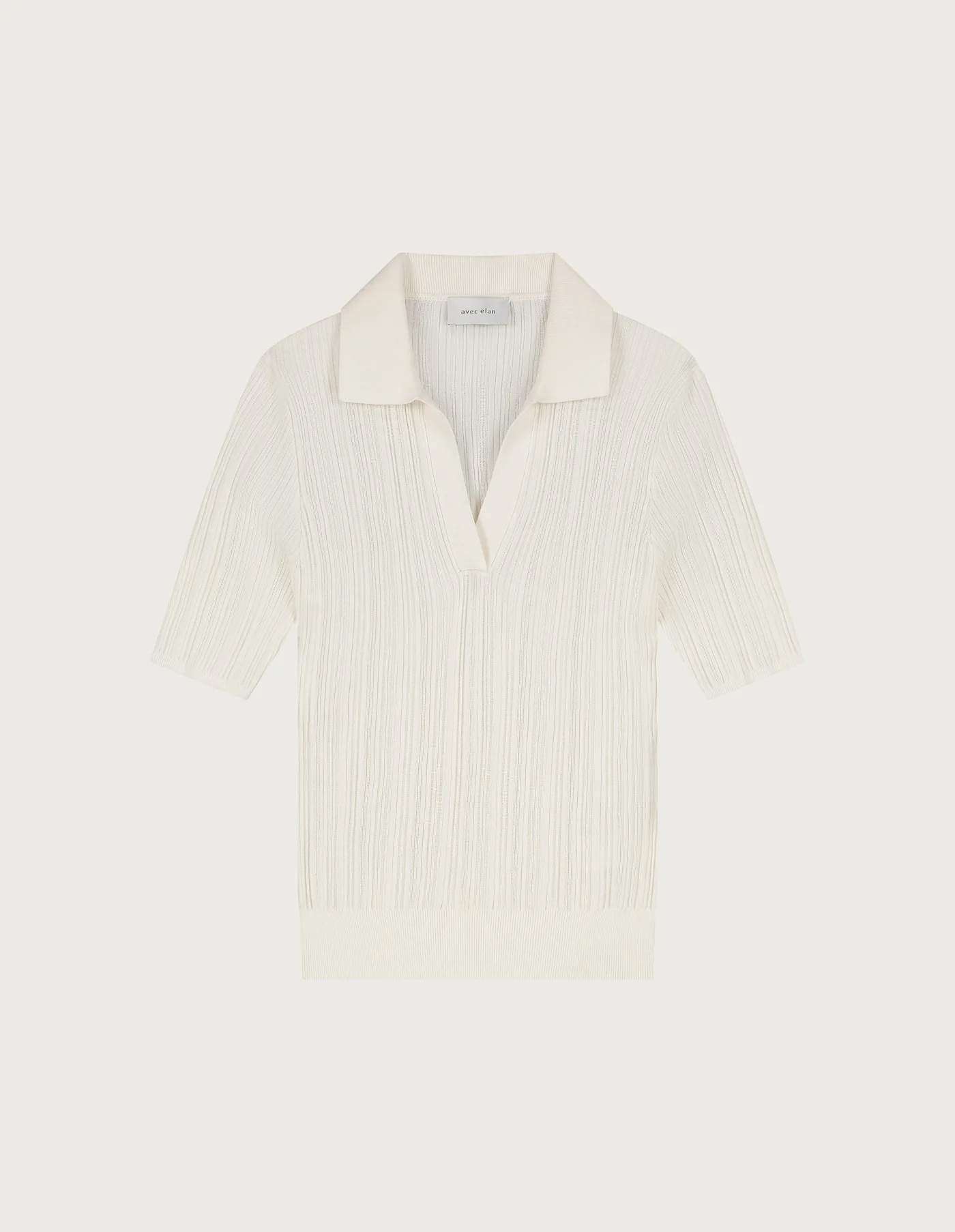 De KITTY van AVEC ELAN. Deze elegante polo knit in een tijdloze ivoortint heeft een open kraag en halflange mouwen die zorgen voor een moeiteloos verfijnde look. Gemaakt van een luxueuze mix van 70% Tencel, 25% katoen en 15% zijde, voelt het item zacht, ademend en comfortabel aan. Combineer met een ton-sur-ton outfit of draag het op denim voor een moderne twist. Shop nu jouw nieuwe essential met klasse!