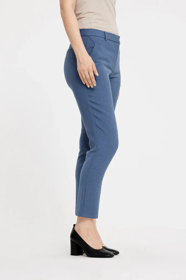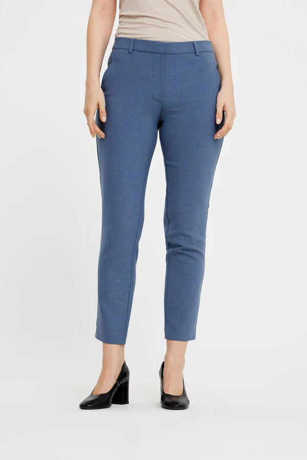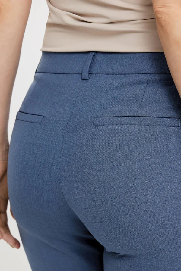 Een KYLIEFV CROP 085 van FIVE UNITS. Deze elegante cropped pantalon heeft een hoge taille en een aangesloten fit die de vrouwelijke vormen subtiel accentueert. Gemaakt van een zachte mix met gerecycled polyester en elastaan voor een comfortabele stretch. Draag met een blouse en hak voor een stijlvolle kantoorlook of combineer met sneakers voor een casual touch.