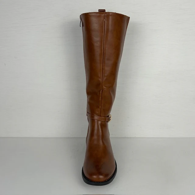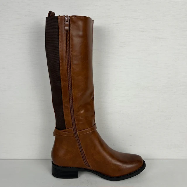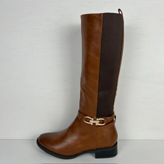 Wat een supermooie leatherlook laarzen! De laarzen zijn afgewerkt met een bandje met een leuk gouden gespje. Ze hebben elastiek aan de zijkant en vallen op maat. Verder hebben de laarzen een rits aan de binnenkant voor de eenvoudige instap.