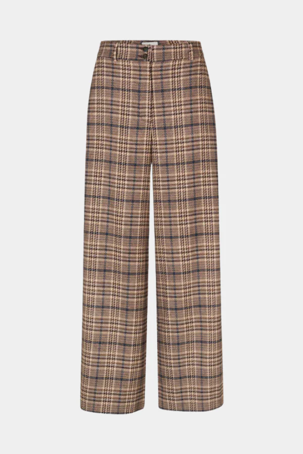 De LAURAFV 067 van FIVE UNITS. Deze vrouwelijke pantalon met een verfijnd ruitpatroon heeft een middelhoge taille en een elegante, rechte pijp. Het comfortabele materiaal bestaat uit 64% gerecycled polyester, viscose en een vleugje stretch voor een soepele fit. Stijlvol met een knit en laarzen of juist chic met een blazer. Shop nu bij ANTRACITE!